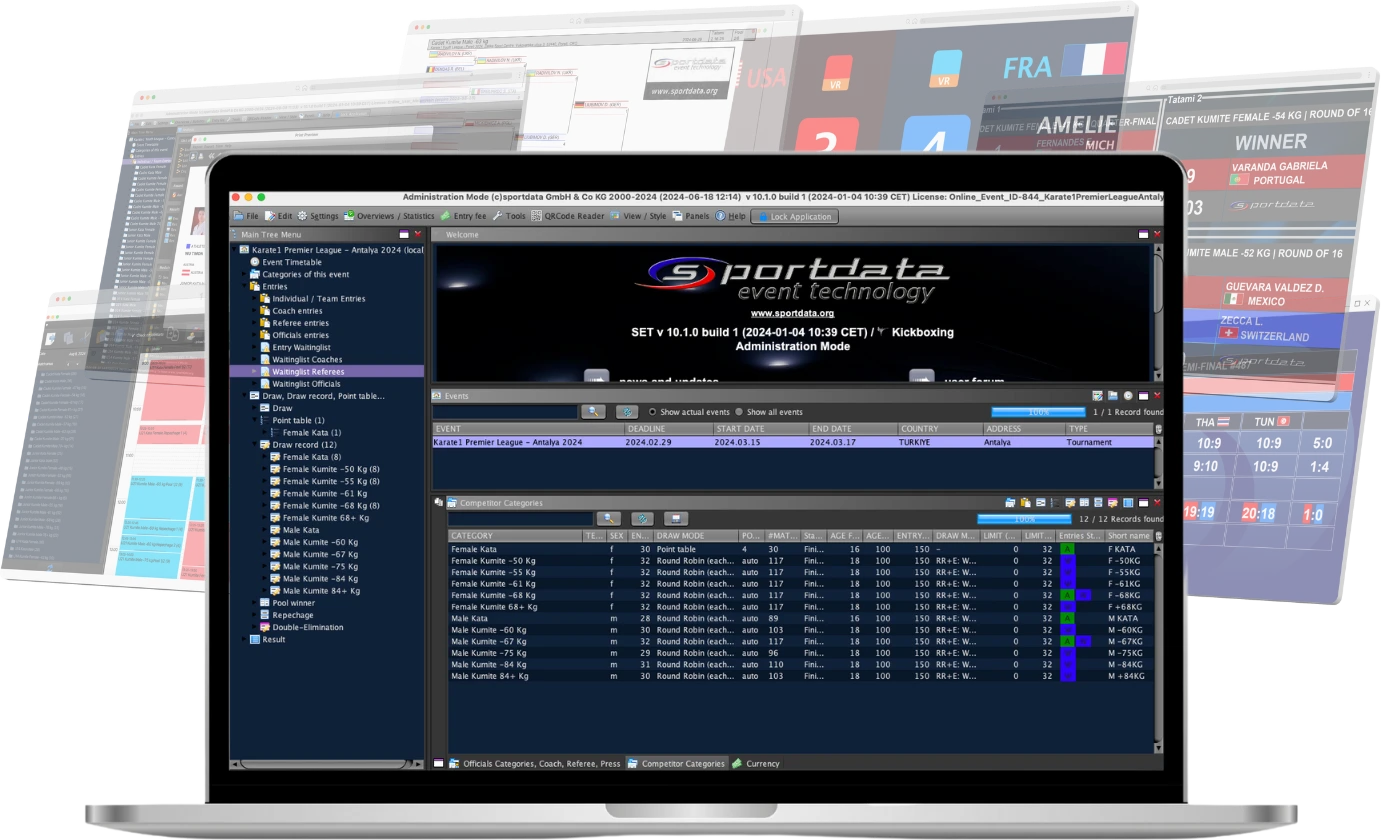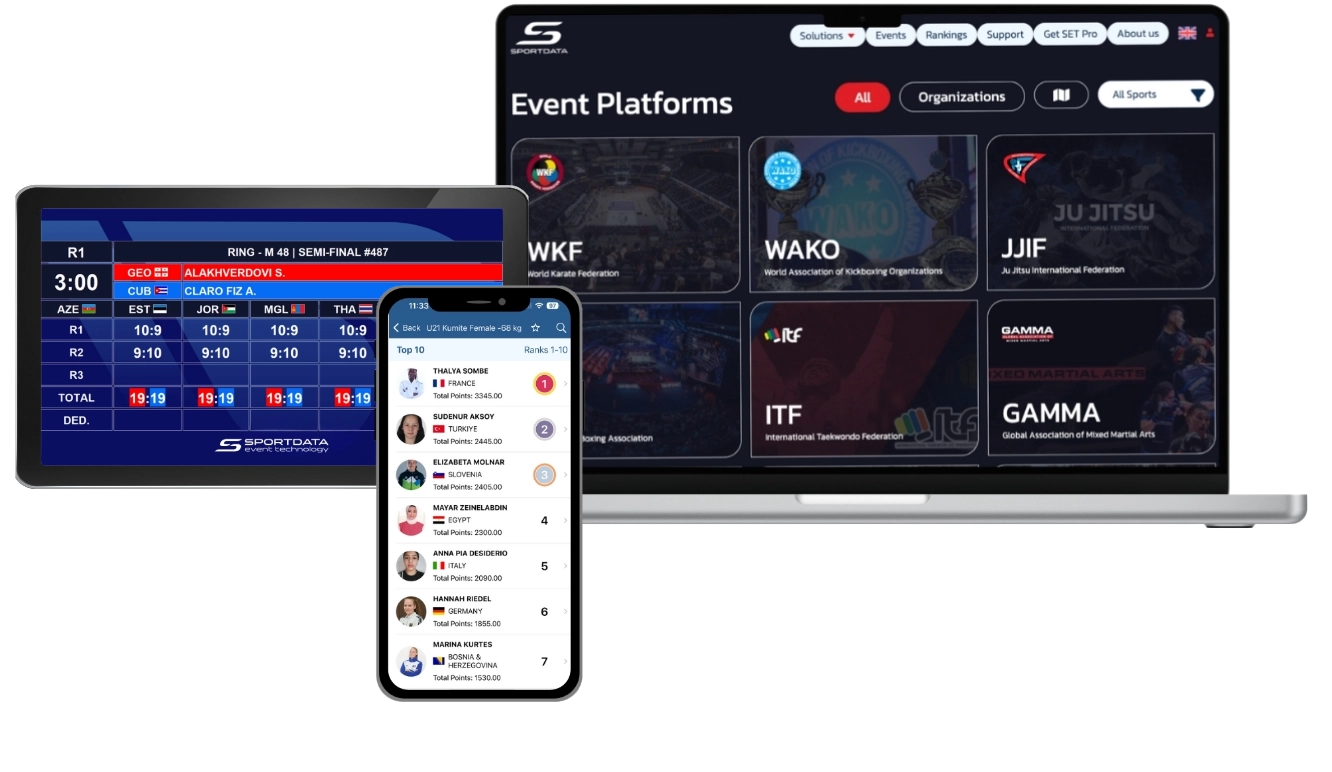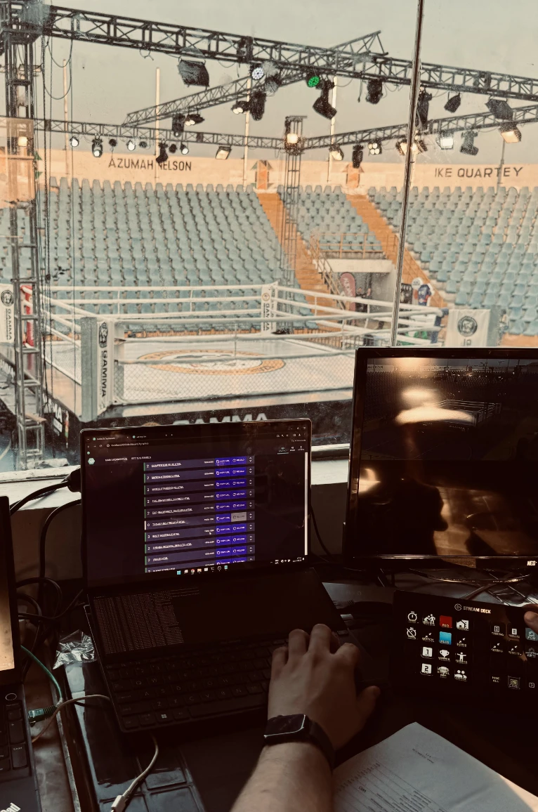 - Onsite Event Support: Managing software & equipment, including setup, troubleshooting, live scoring, TV graphic operations, and accreditation services.