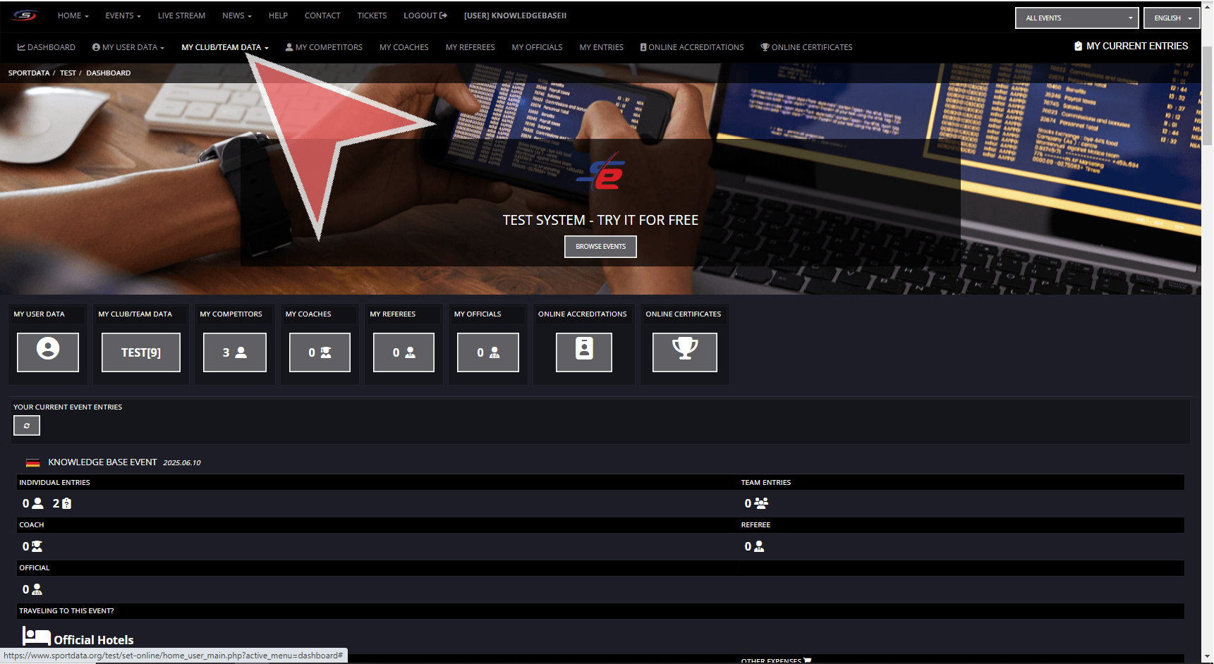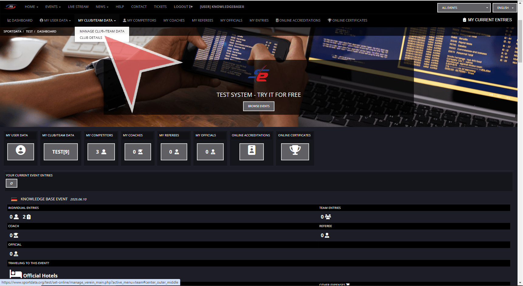 In your club account, go to my club/team data in the navbar.