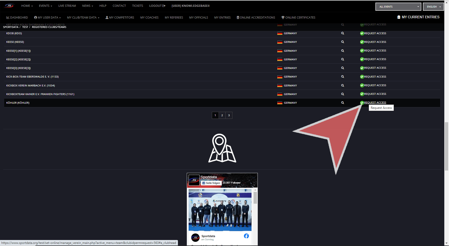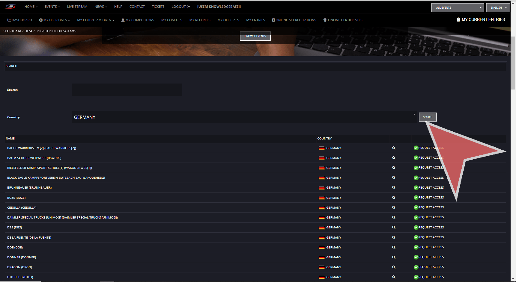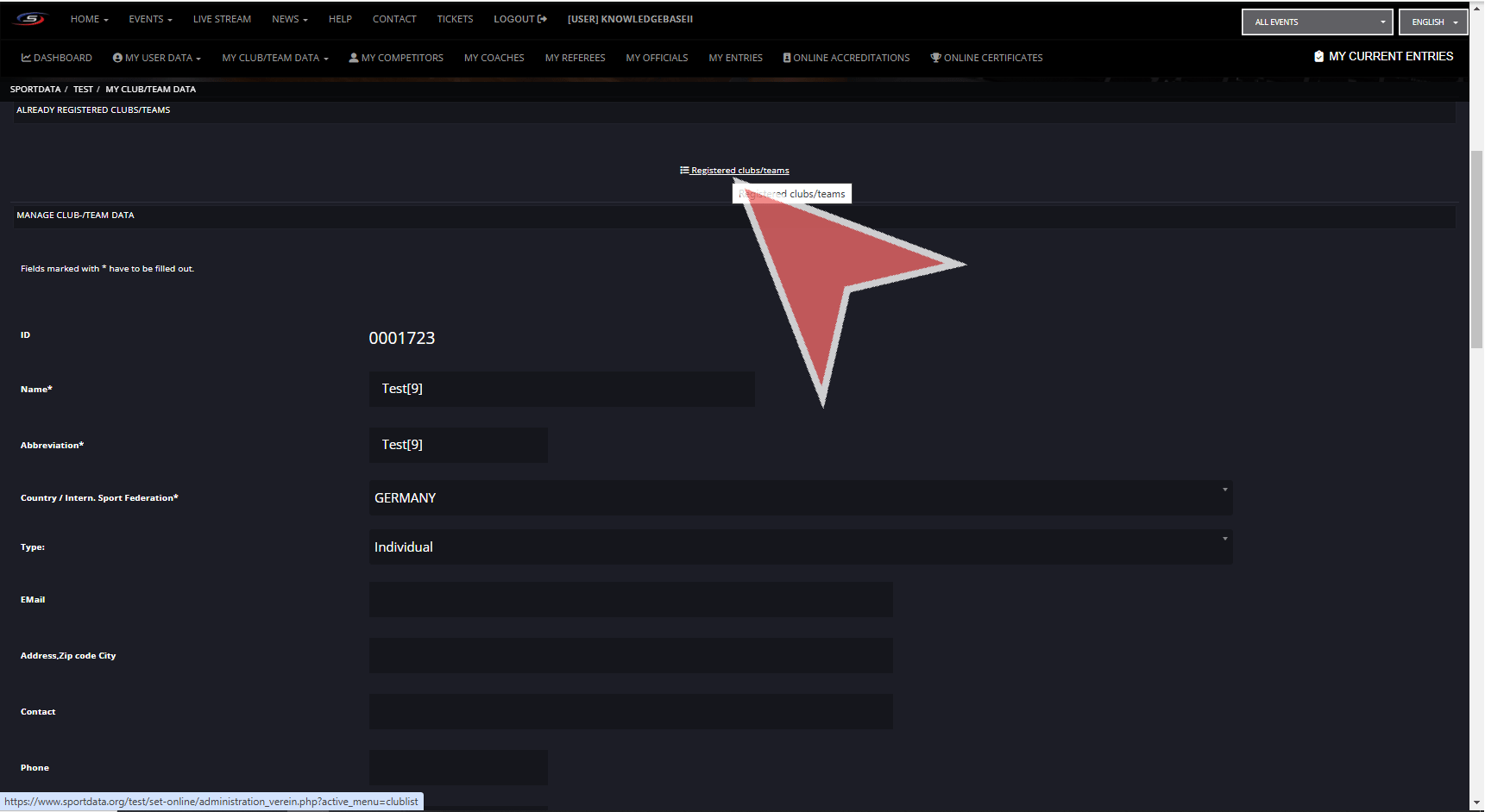 Click on the Registered clubs/teams button.