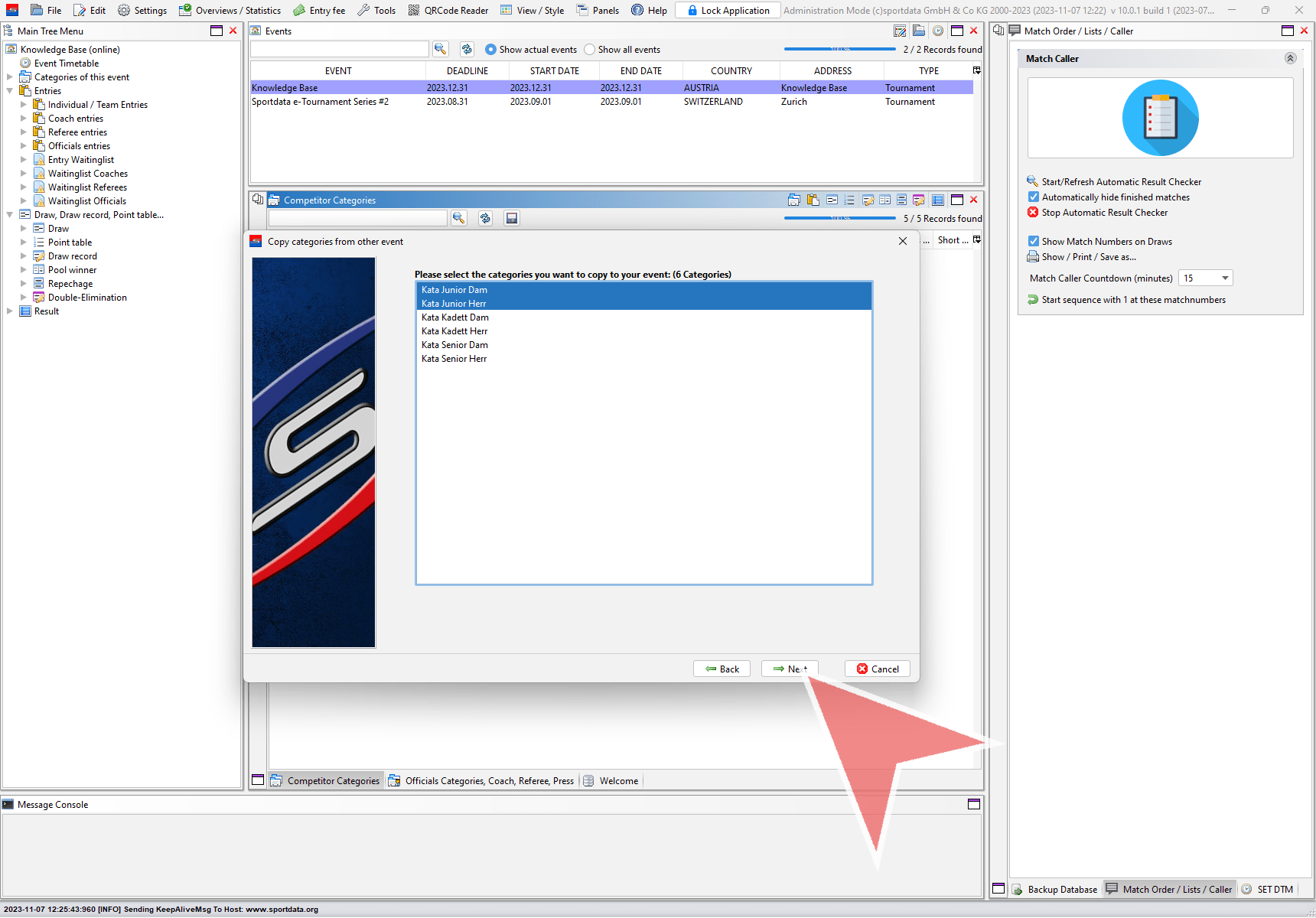 This article describes how to copy categories from another event with the SET-software. If the same categories are used for multiple events, it is recommended to use this method instead of adding new categories. For this option it is necessary to be logged in to an online database (not to a local database).
