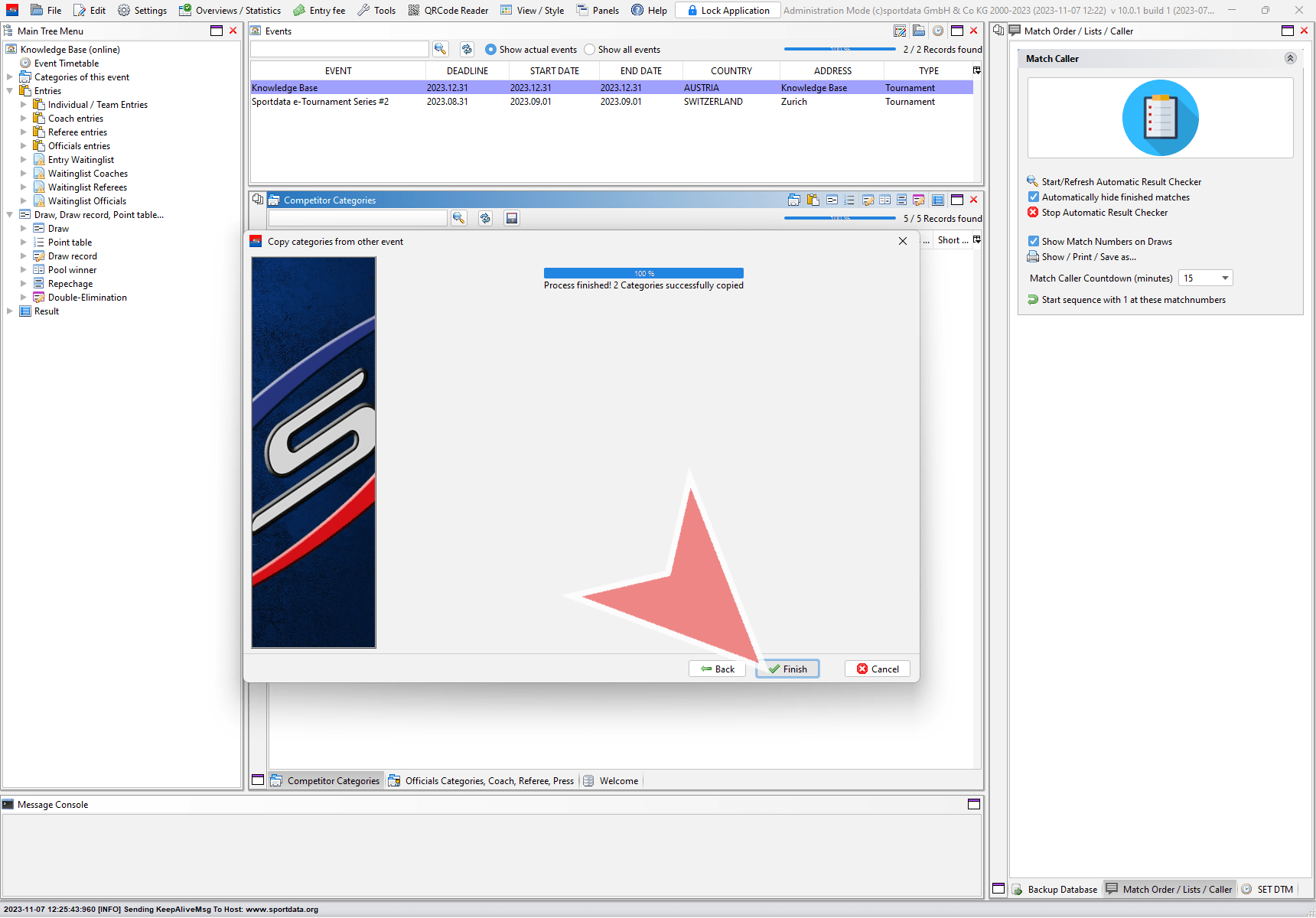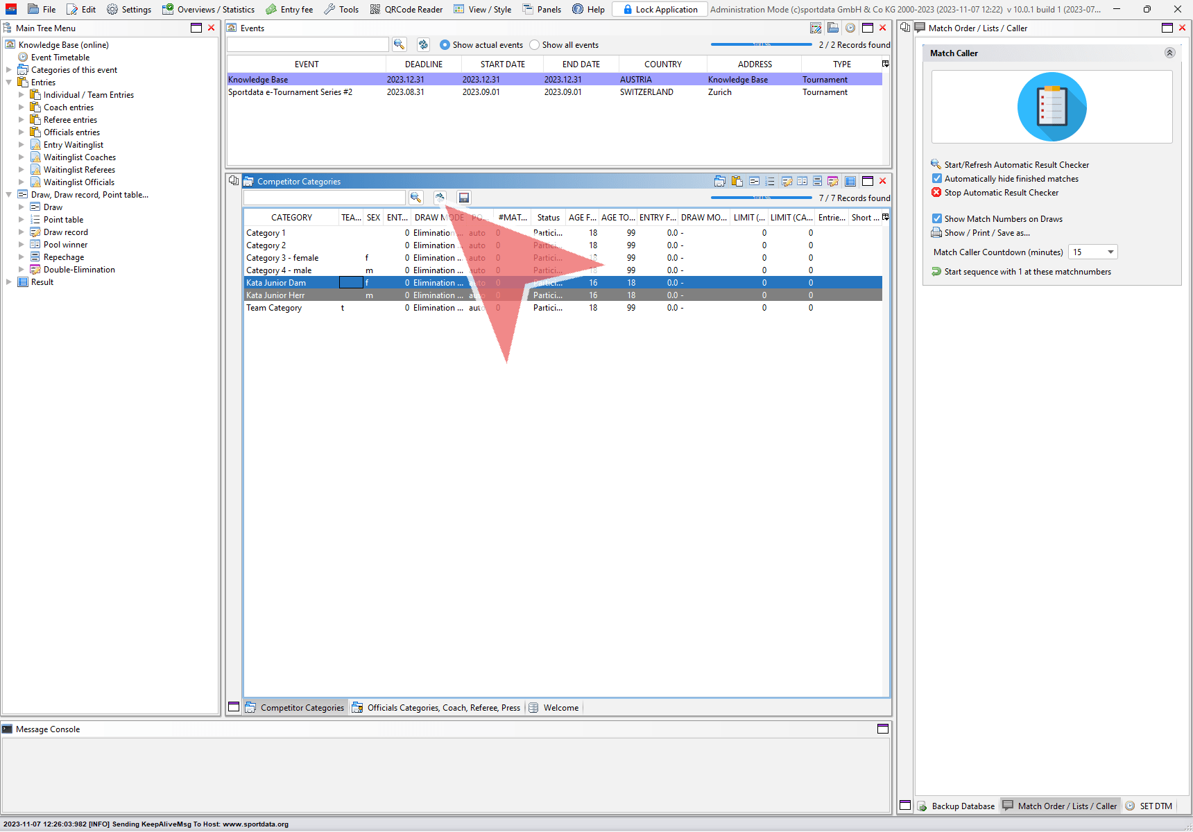 After hitting the “Refresh”-button the new categories are shown in the list of competitor categories and can be used for the event.