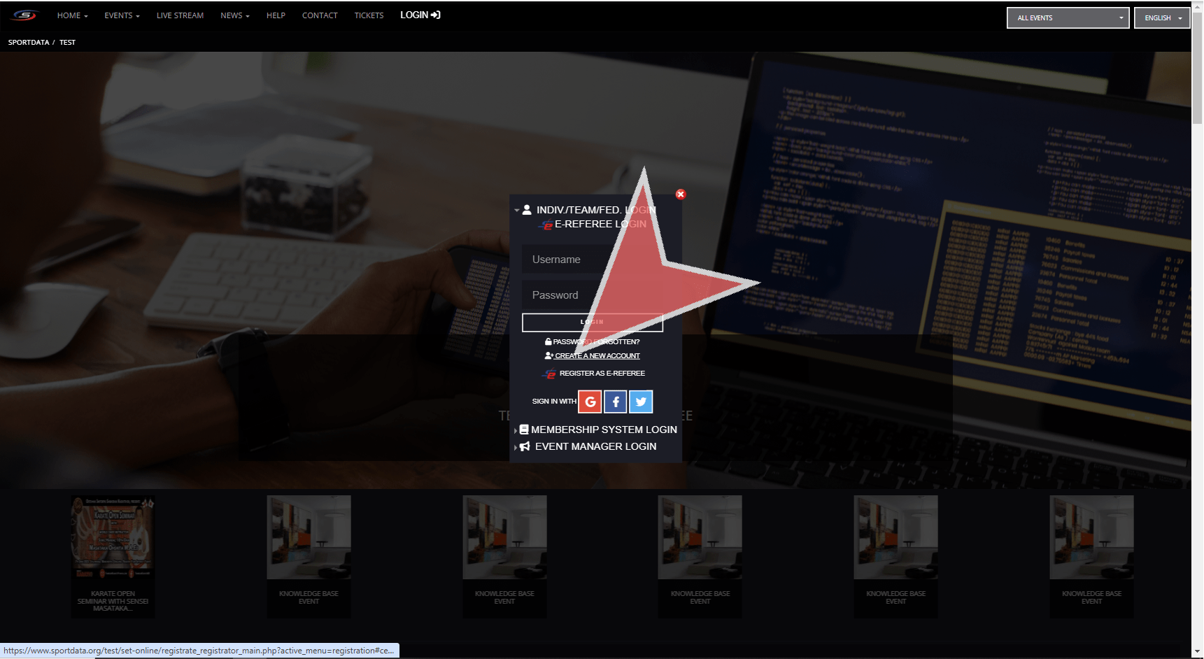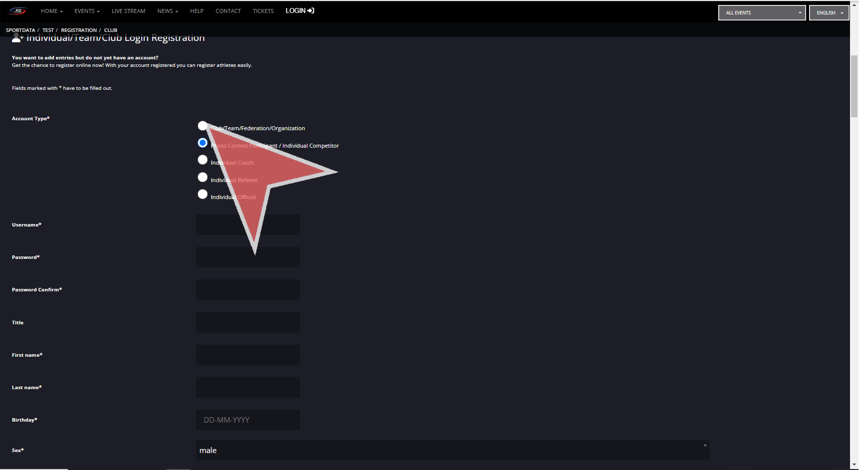 Select the account type club/team/federation/organization, and complete the form, making sure to remember the username and password because they will be used for both the event platform and SET OVR.