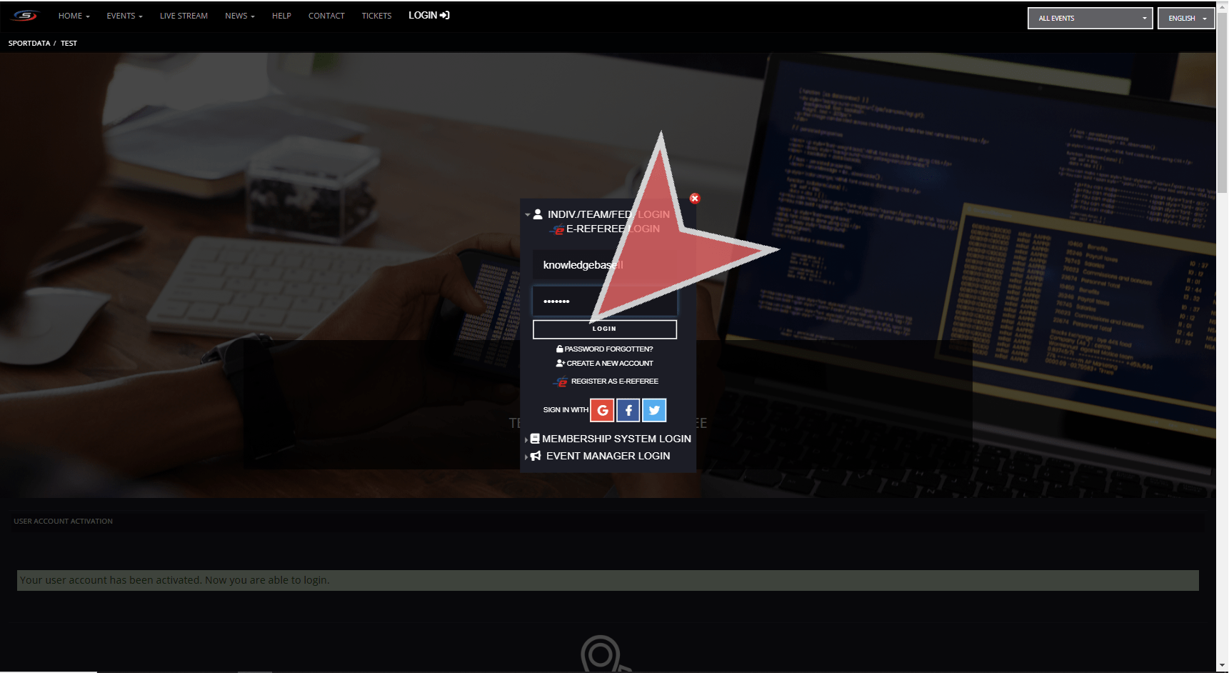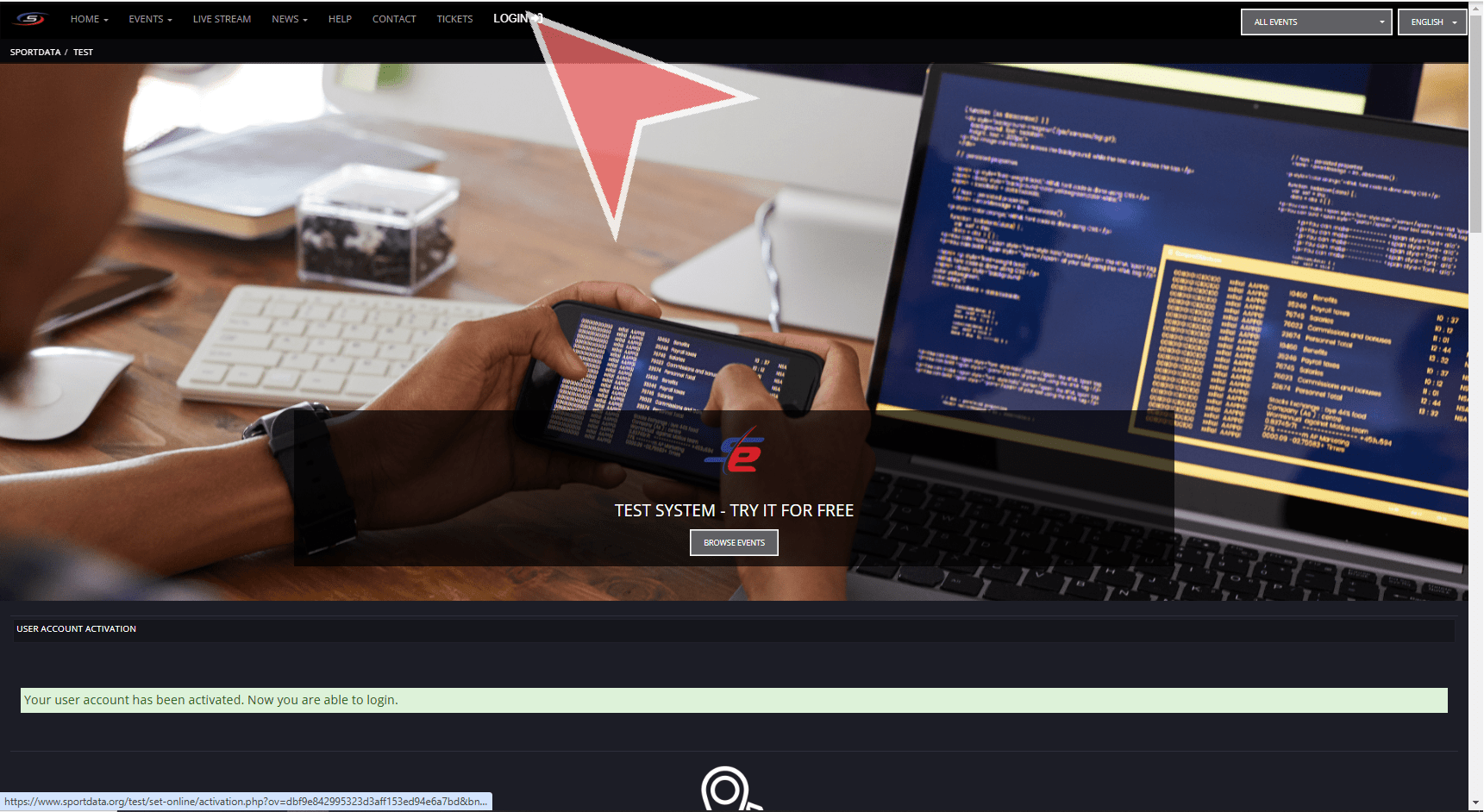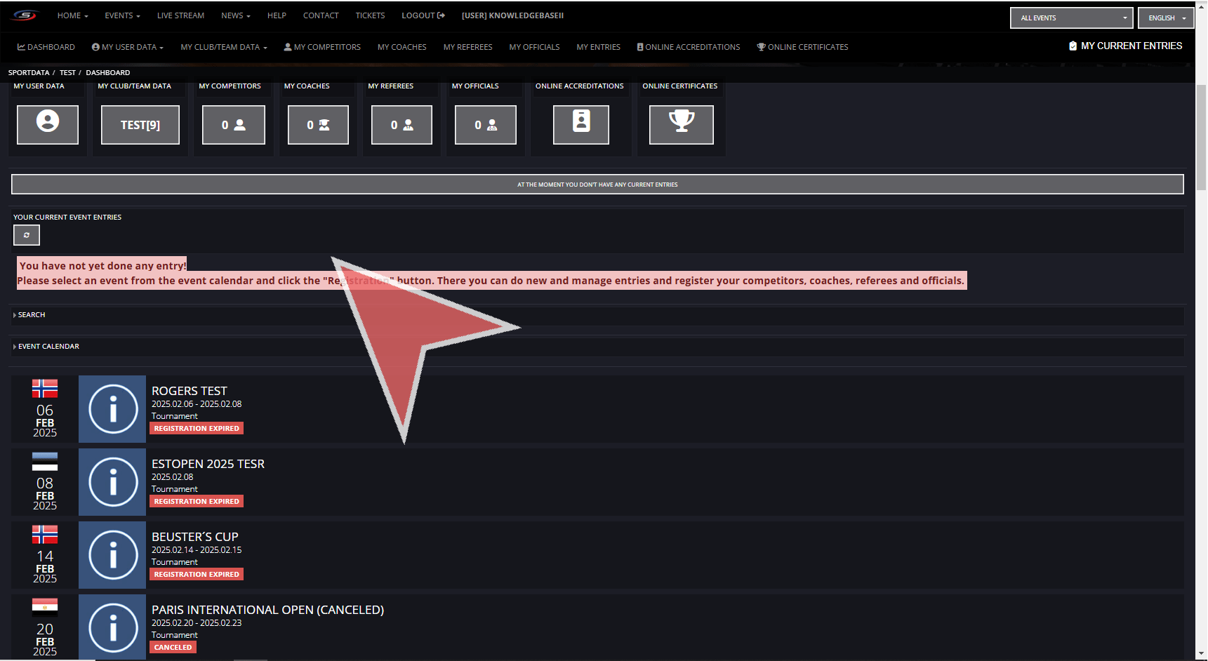 You have now arrived in the main dashboard of your account, where you can see your registration data, and events.