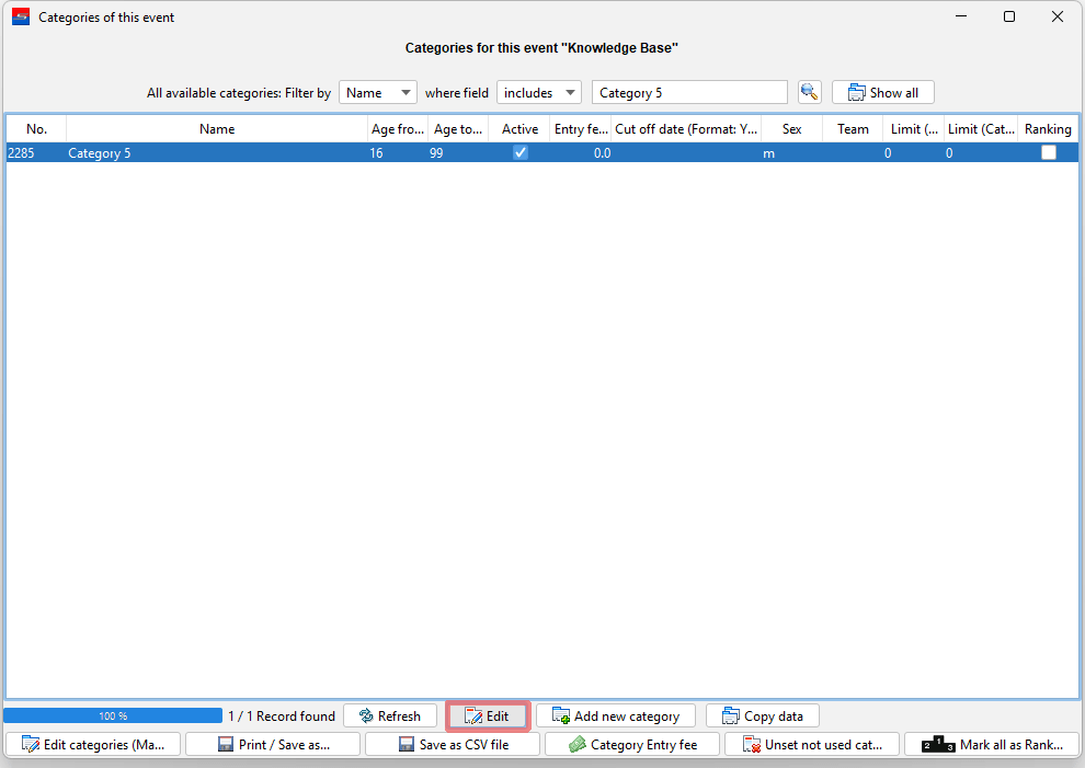 Select the category and proceed with the “Edit”-button.