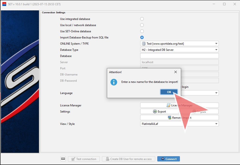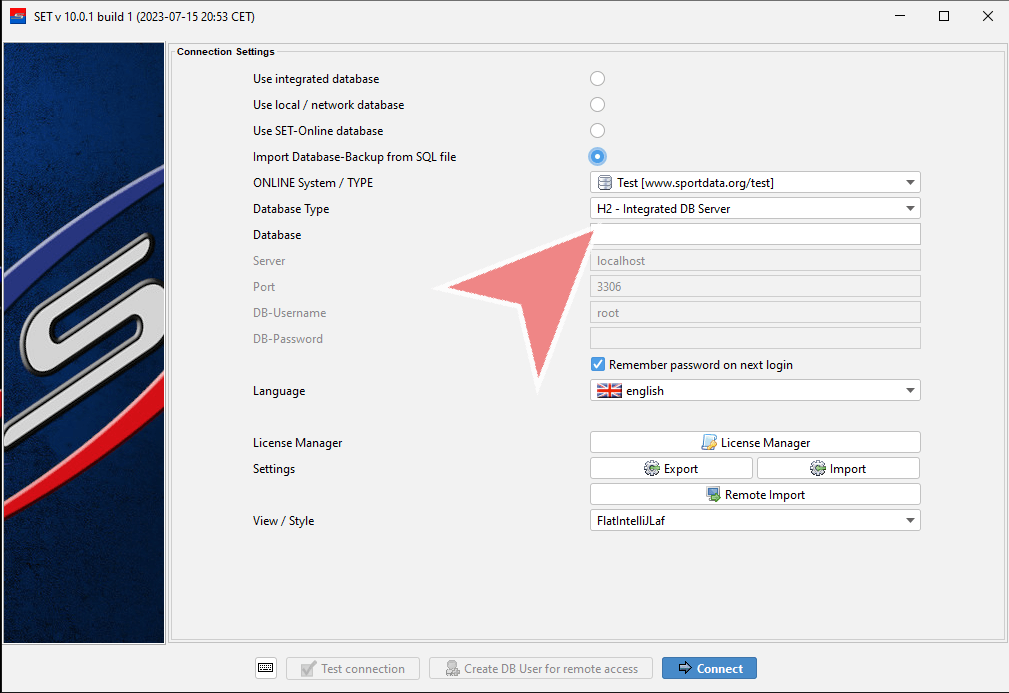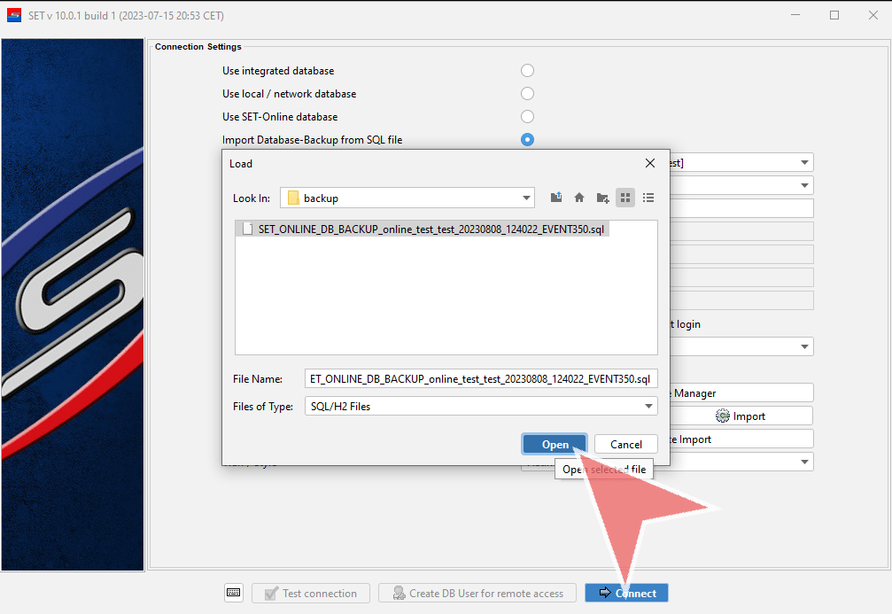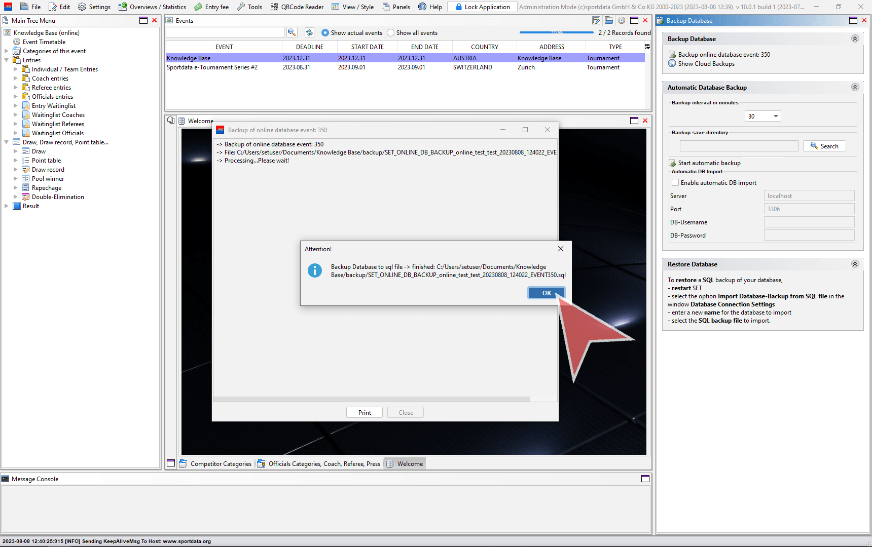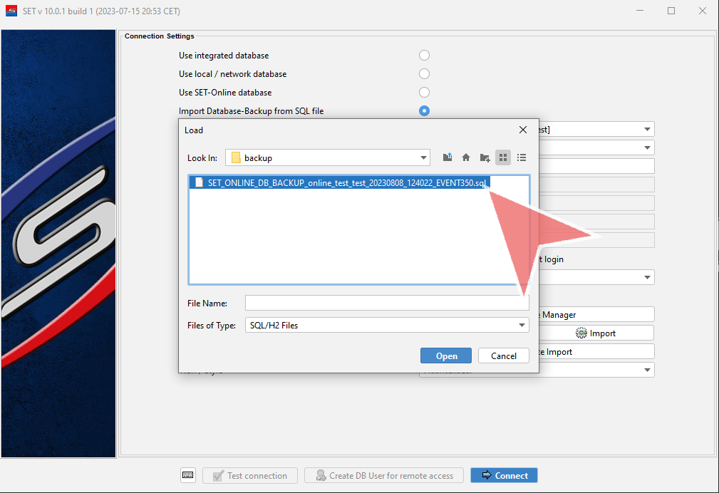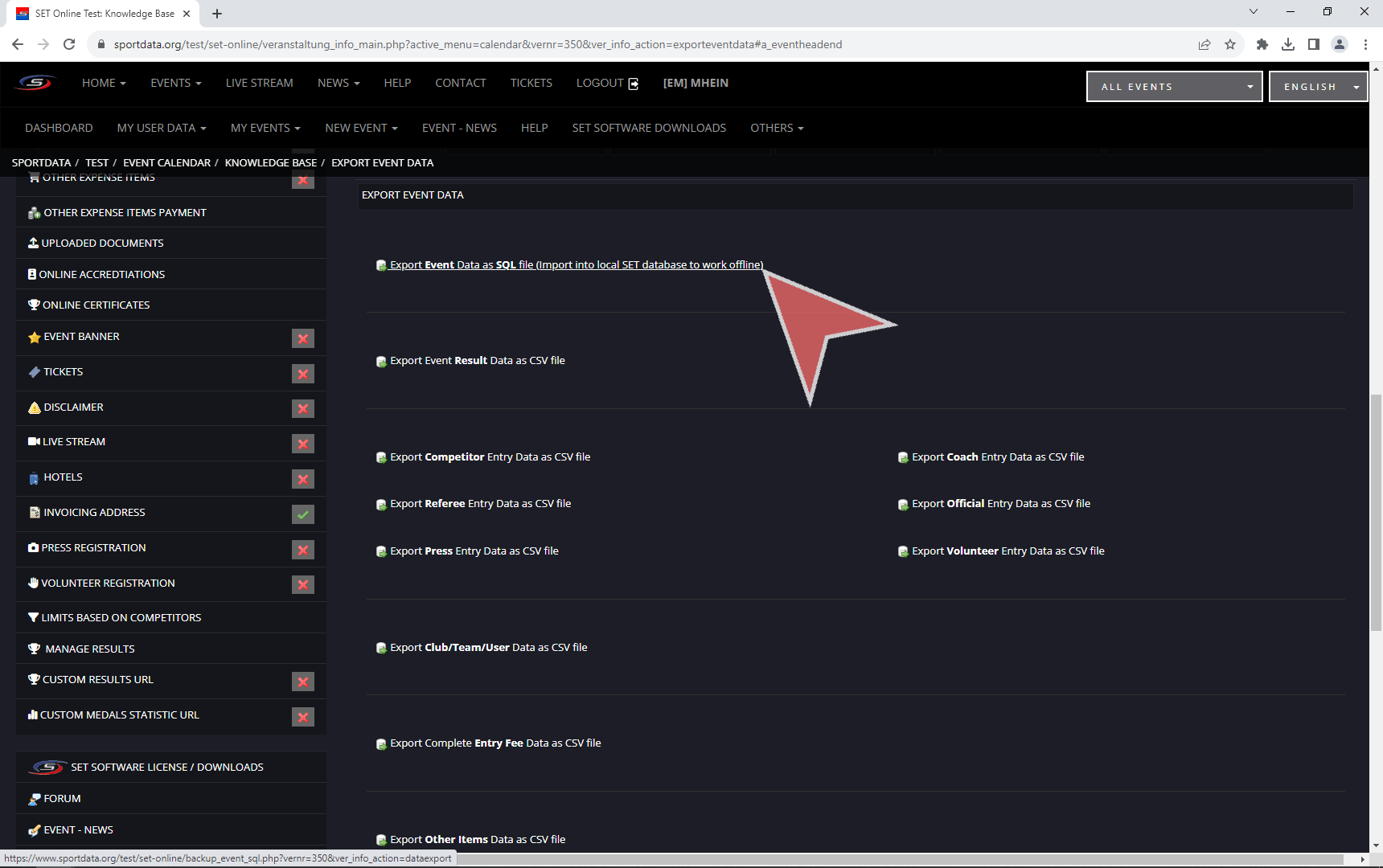Click on “Export Event Data as SQL file” to be able to import the database in the SET OVR software.