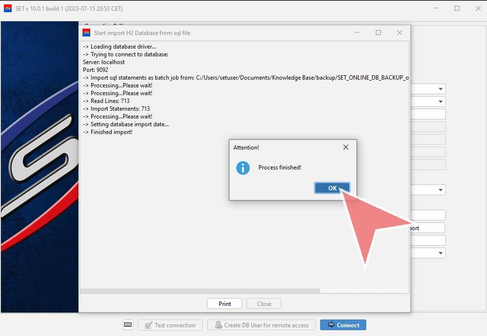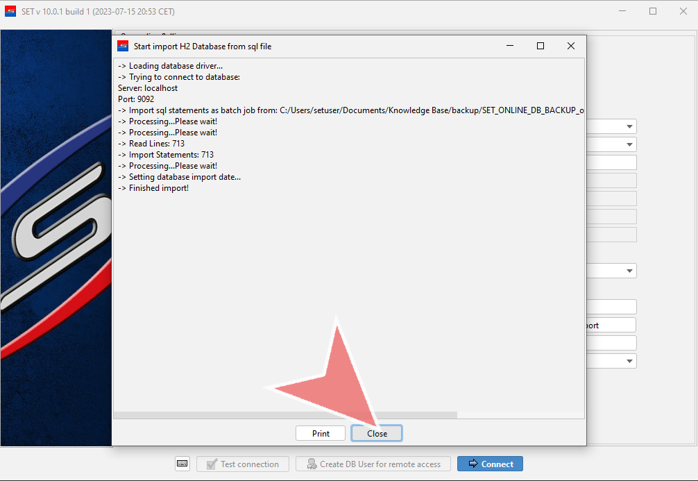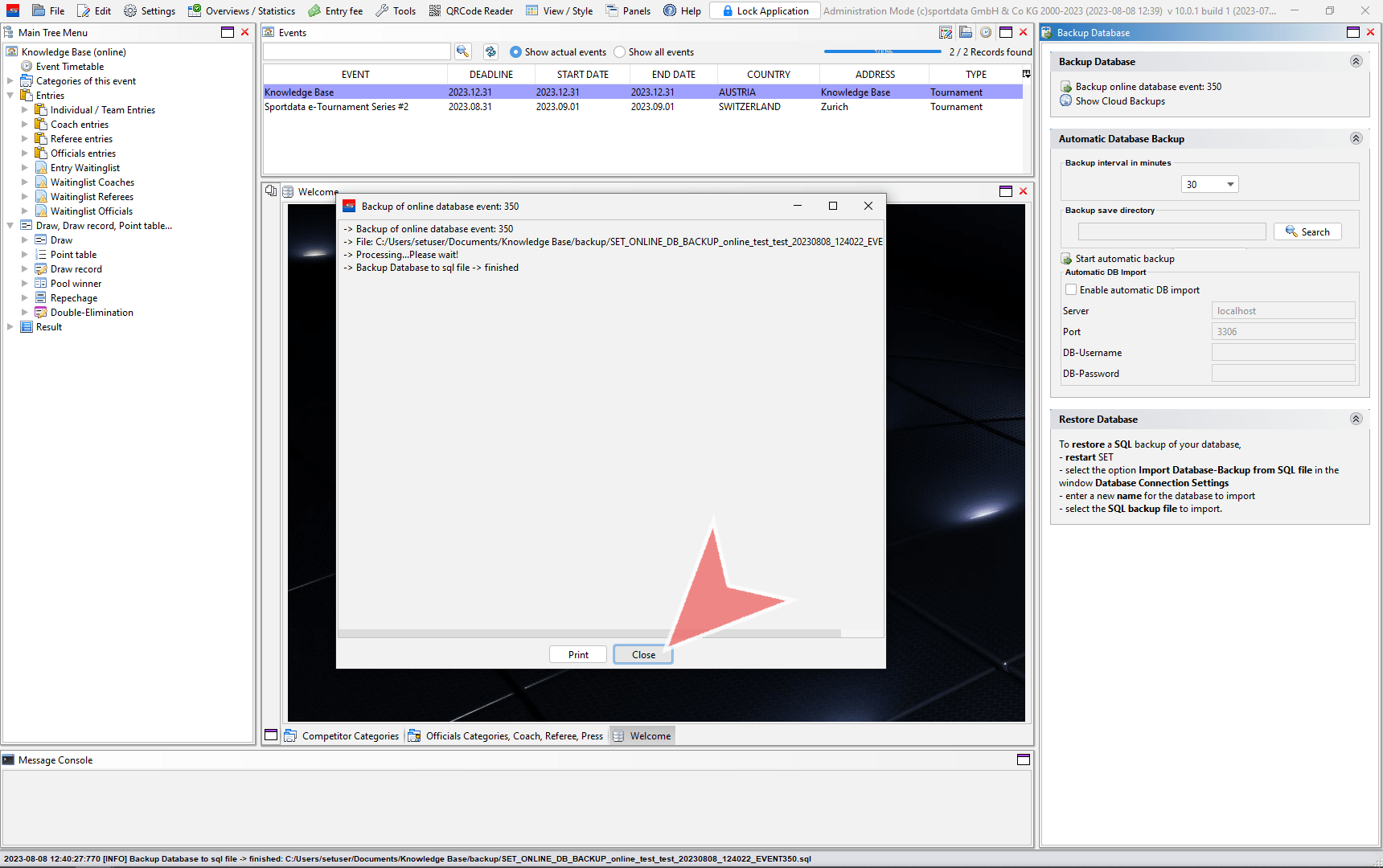 In this window you find all information about the exported database including the direction. You can close it once the backup is finished.