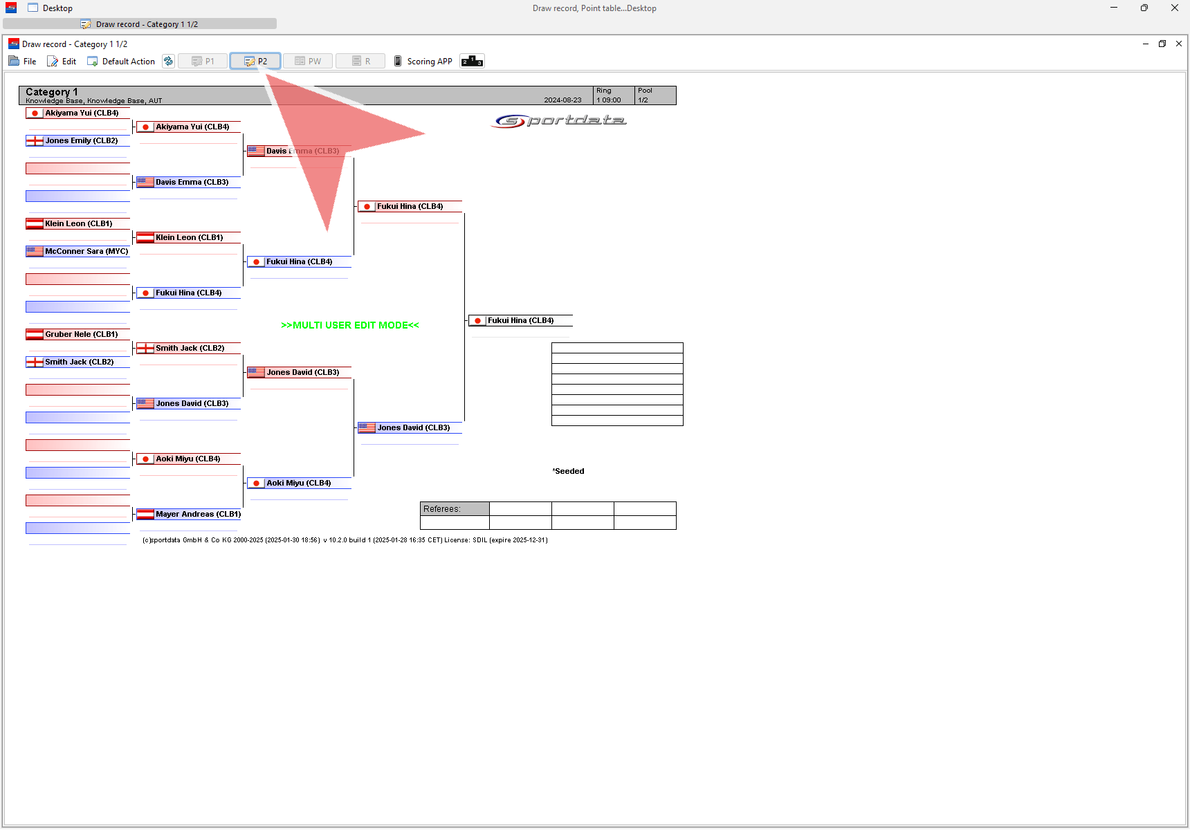 The repechages have been successfully computed. Go to “File” and select “Save” to make them visible to others. Once saved successfully, the green message will change to “Multi User Edit Mode,” allowing scoring operators to view and work with it.