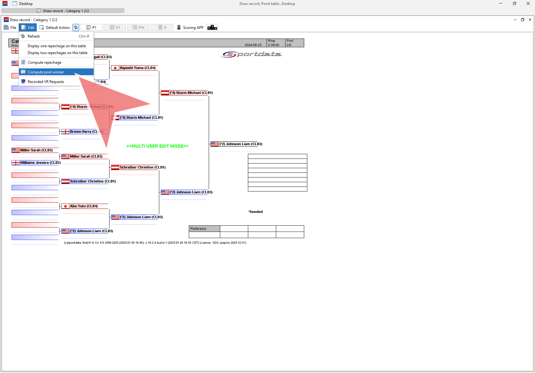 To generate the pool winners, go to “Edit” and select “Compute Pool Winner.” Before doing so, ensure that at least two pools are completed.