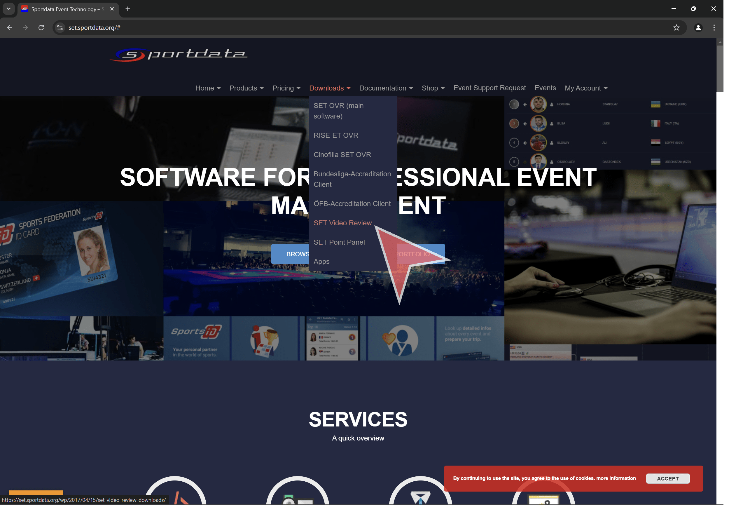 Next, go to set.sportdata.org and click on “Downloads” and “SET Video Review”