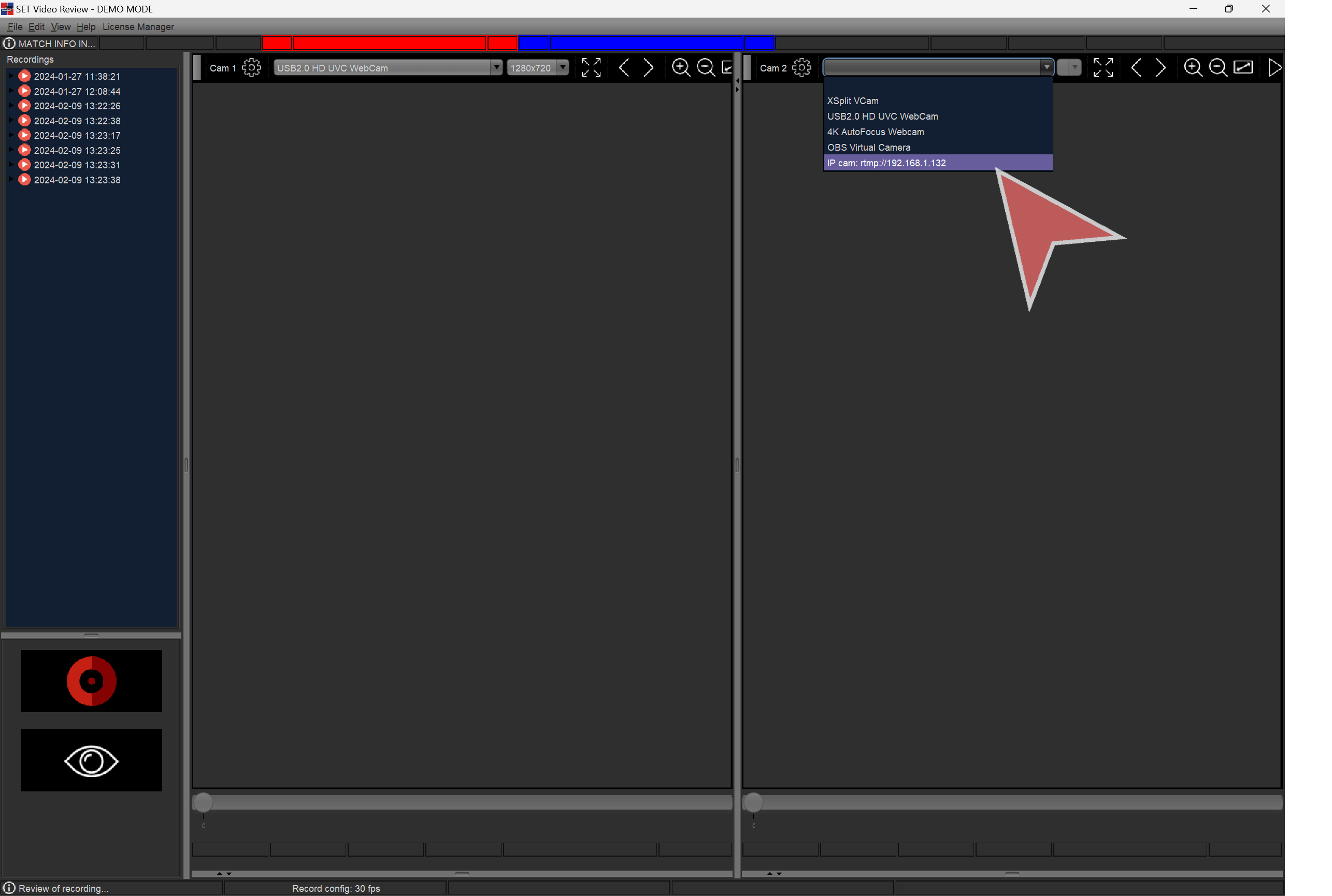 Select number of cameras to show: Click in “View > Camera Windows” and select desired number.