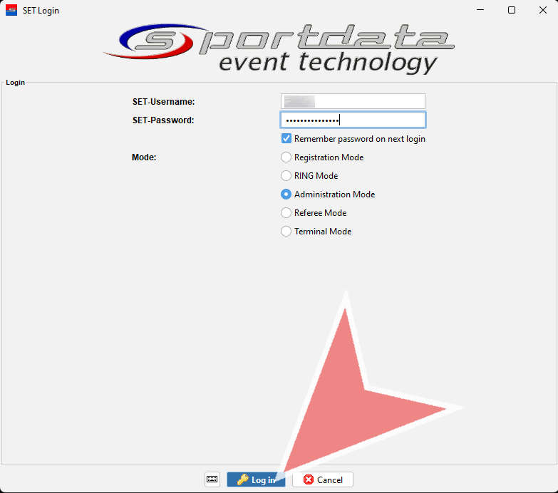 Enter the SET-Username and SET-Password of the database and click on the “Log In”-button to continue.