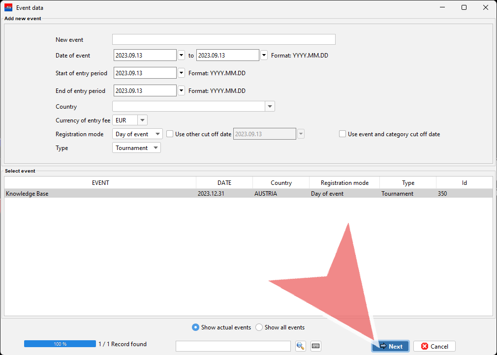 You find all information about the event in this window. Proceed by clicking on “Next”.