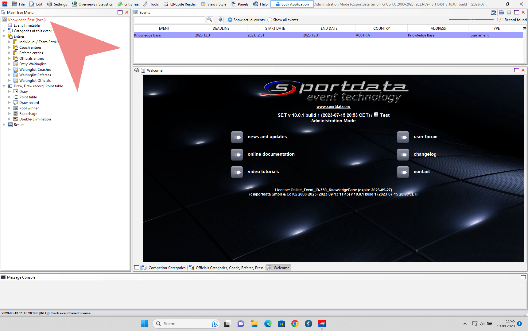 In the Main Tree Menu it is now indicated that you work on a local database. Your connection was successful.