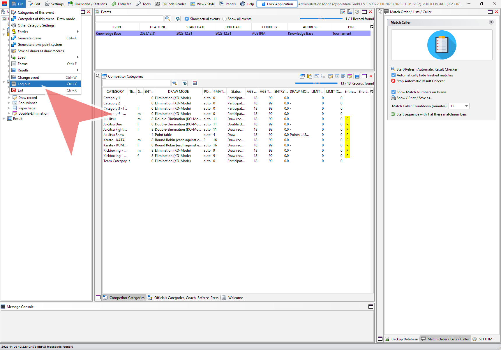 The Administration Mode is the most powerful mode for eventmanagers where all tools and features are enabled. This is the correct mode for all administrative tasks before, during and after the event related to topics like registration, draws, timetable, result management etc.