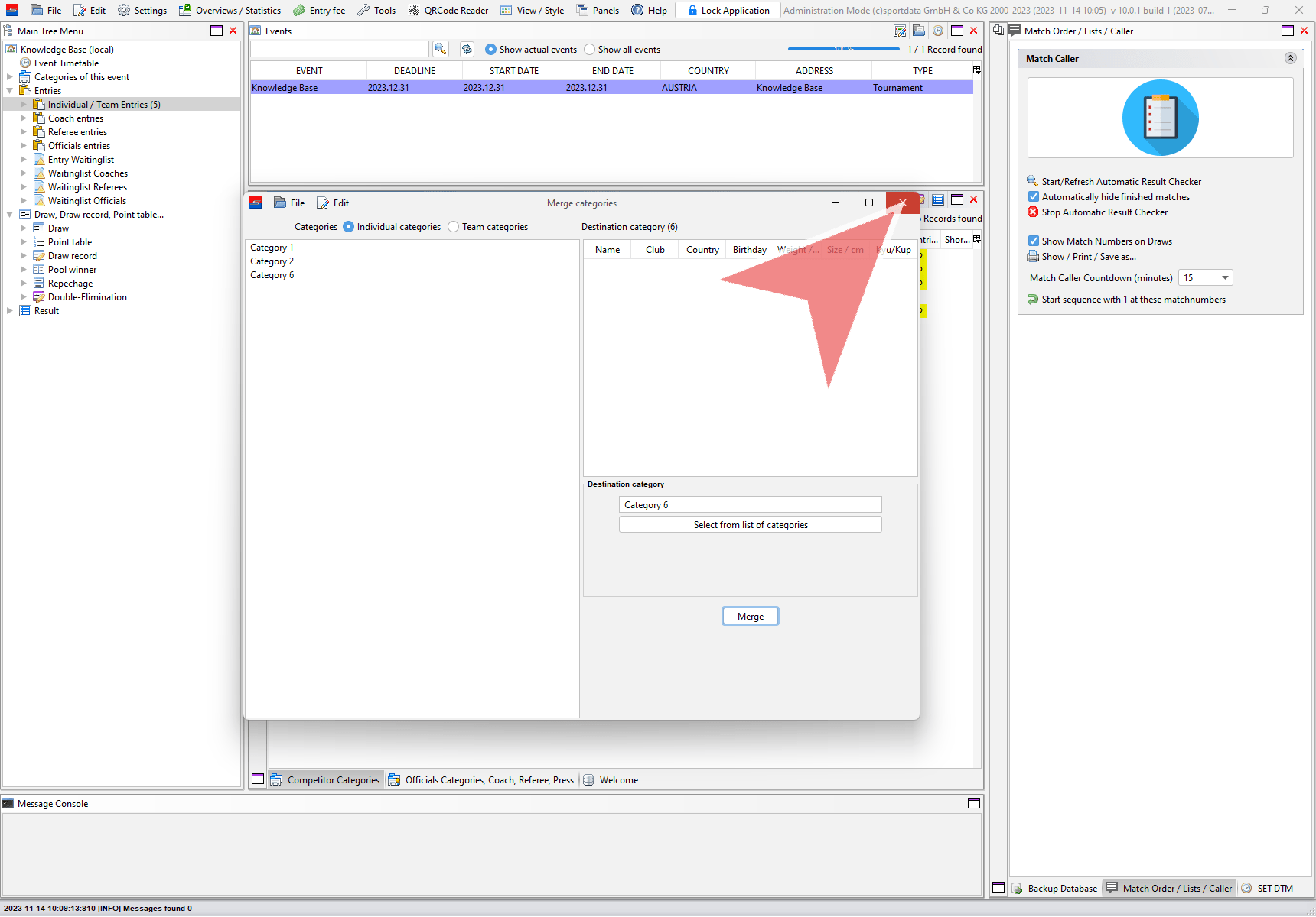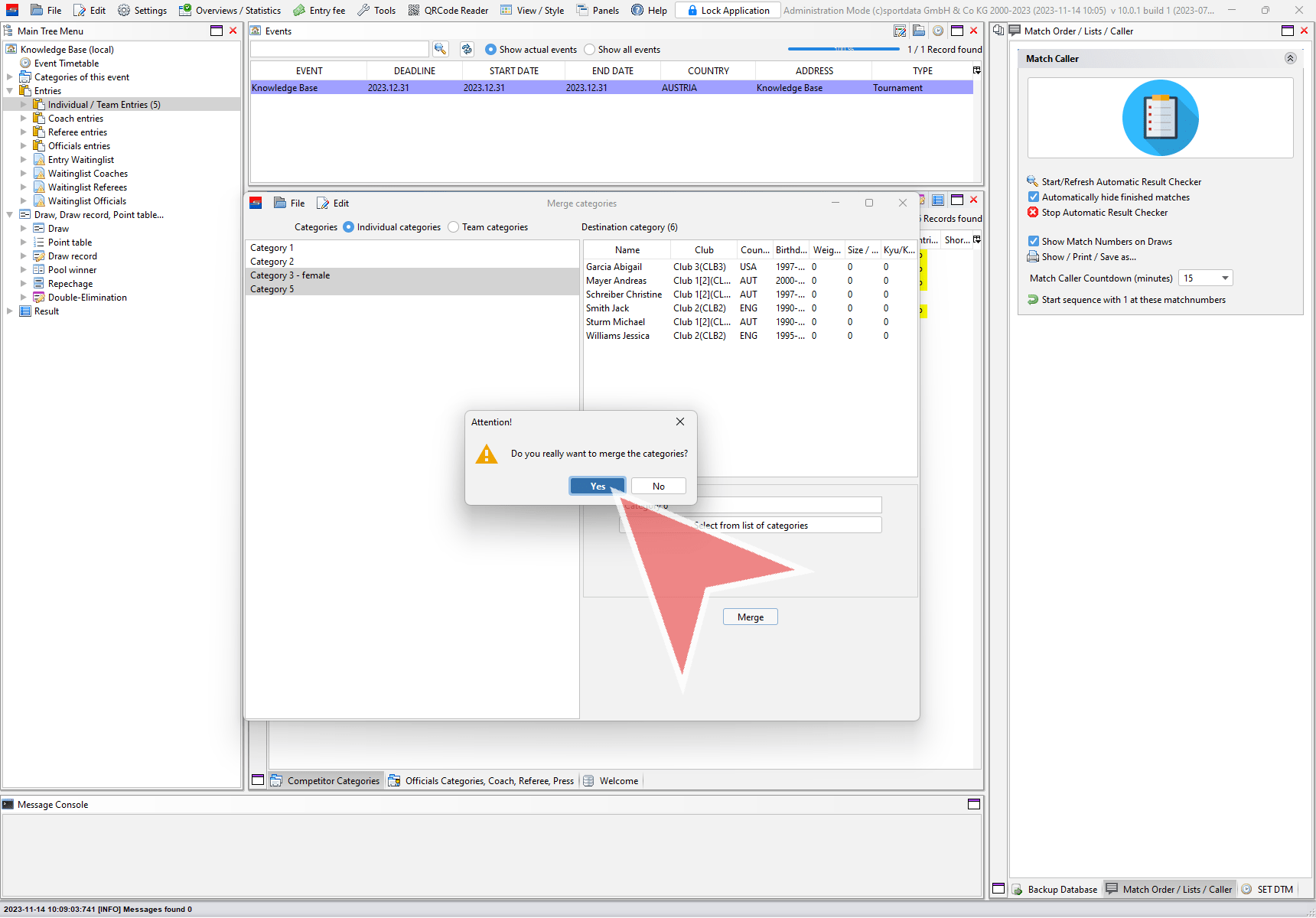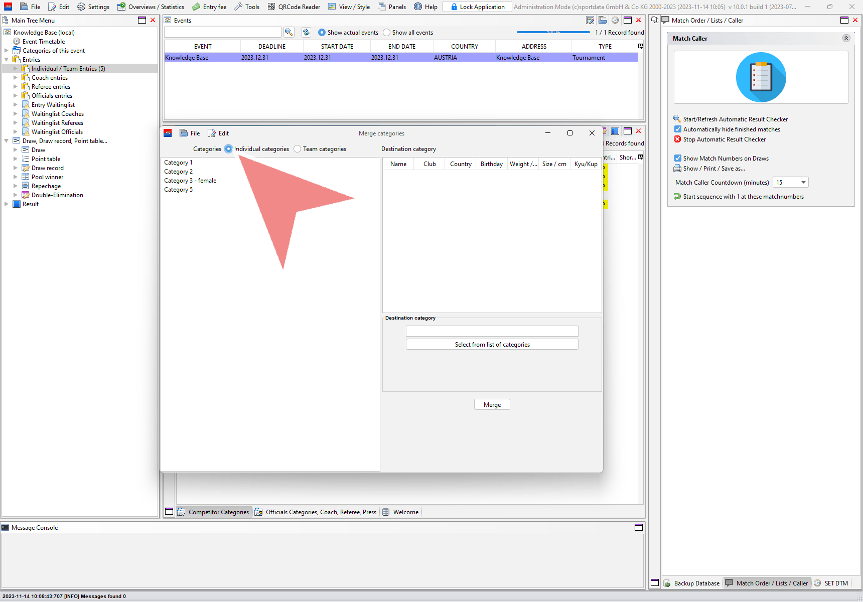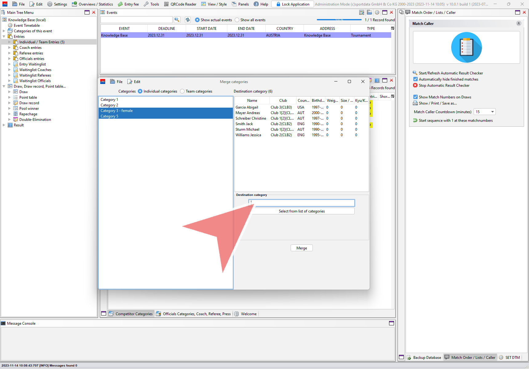 In the “Merge categories” window select if you want to merge individual or team categories.
