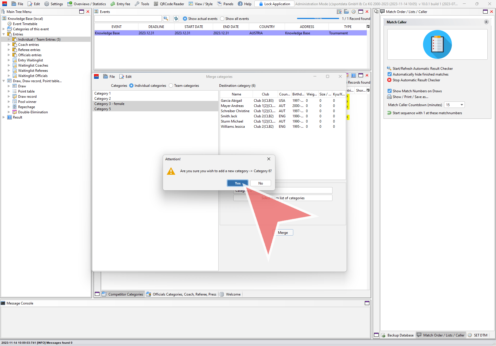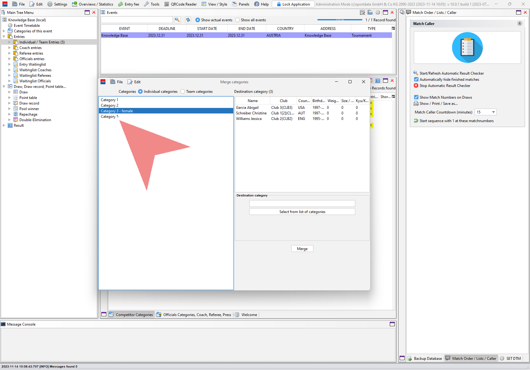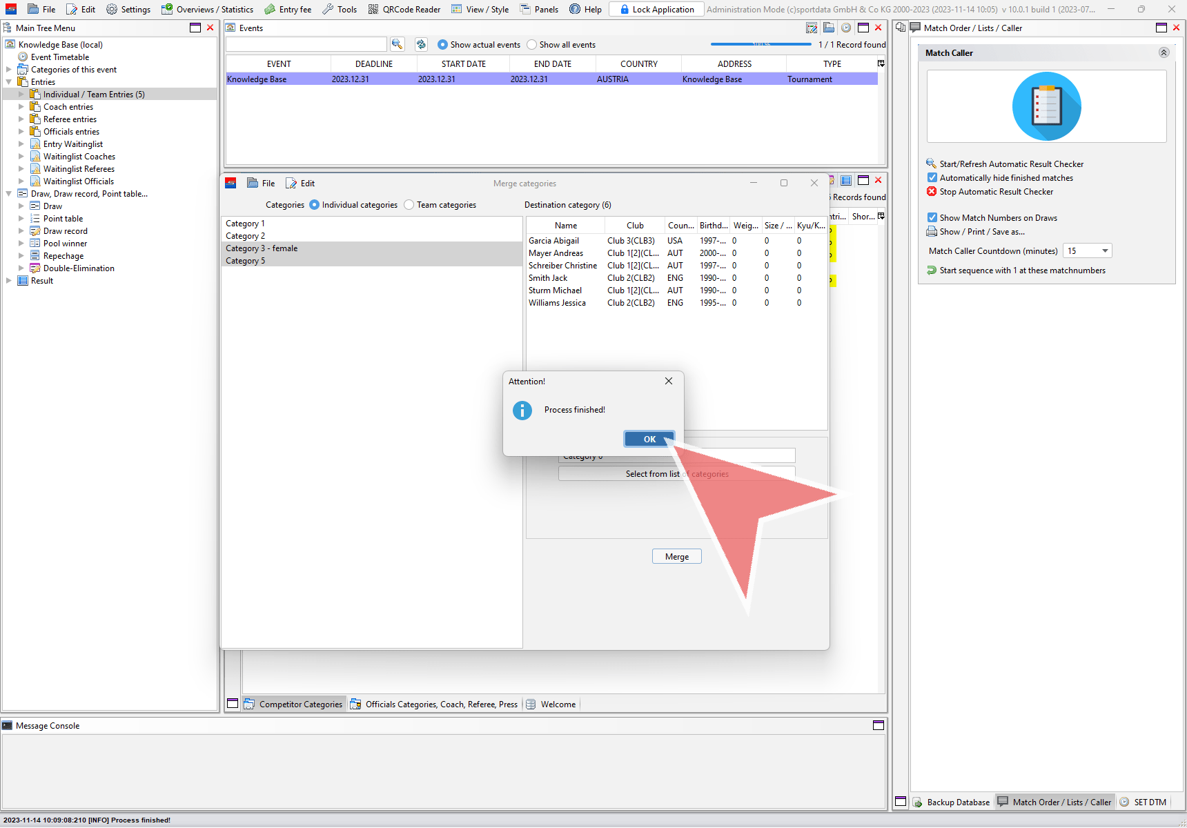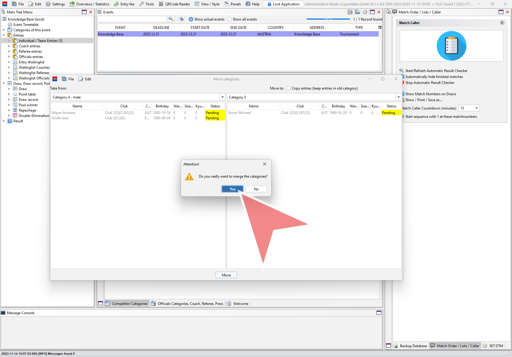 In the “Merge categories” window select if you want to merge individual or team categories.