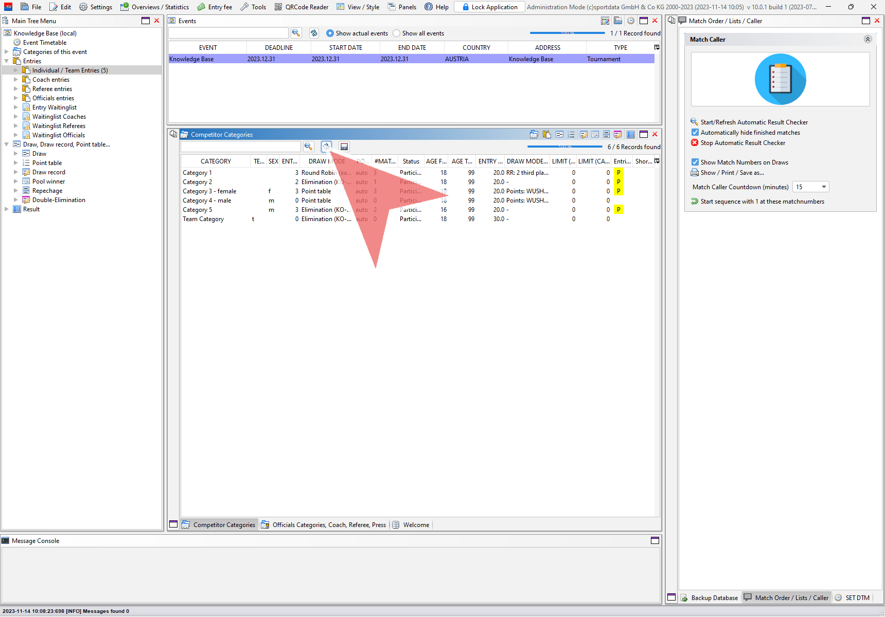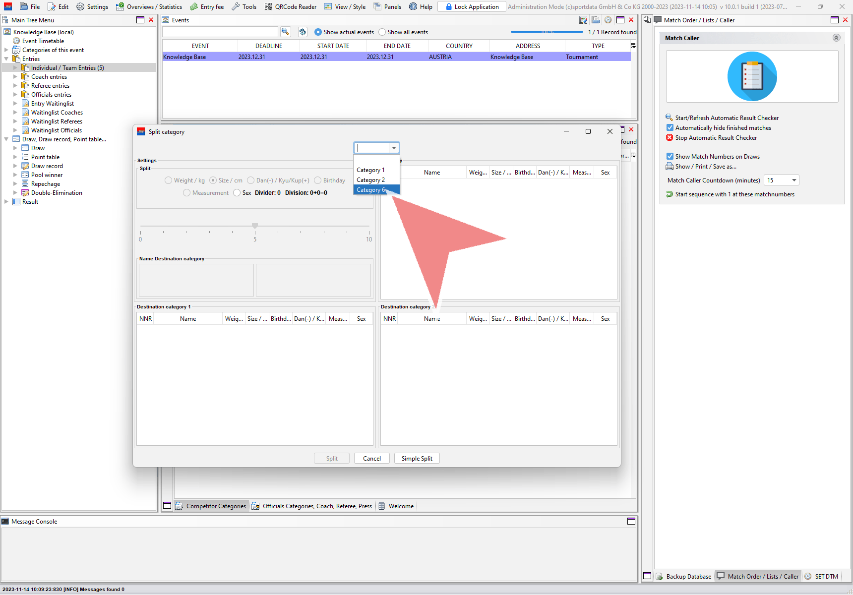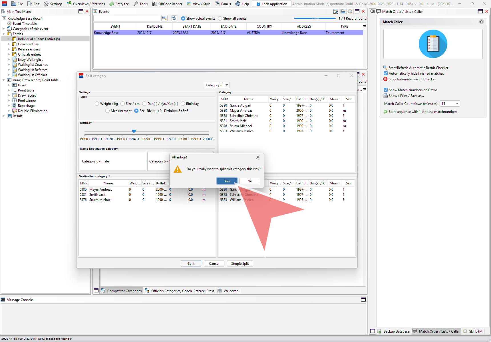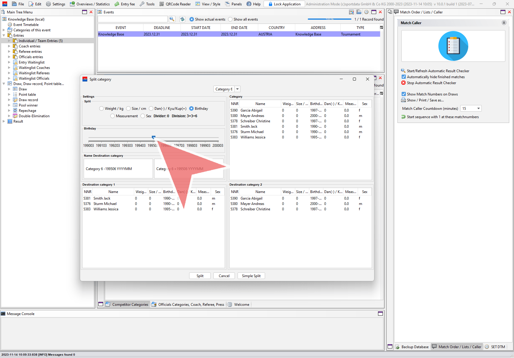 On the top right side you find all entries of the selected category. Below you find the possible two new categories devided by the chosen split method (here by gender).