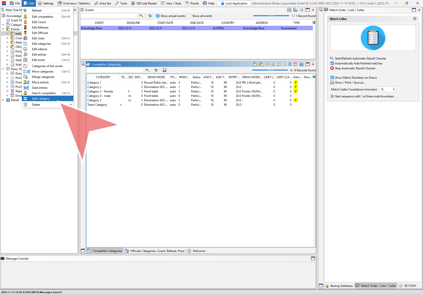 Split a category based on a characteristic like gender or age to devide the entries in two new categories. Go to “Edit” in the menu bar and select “Split category”.