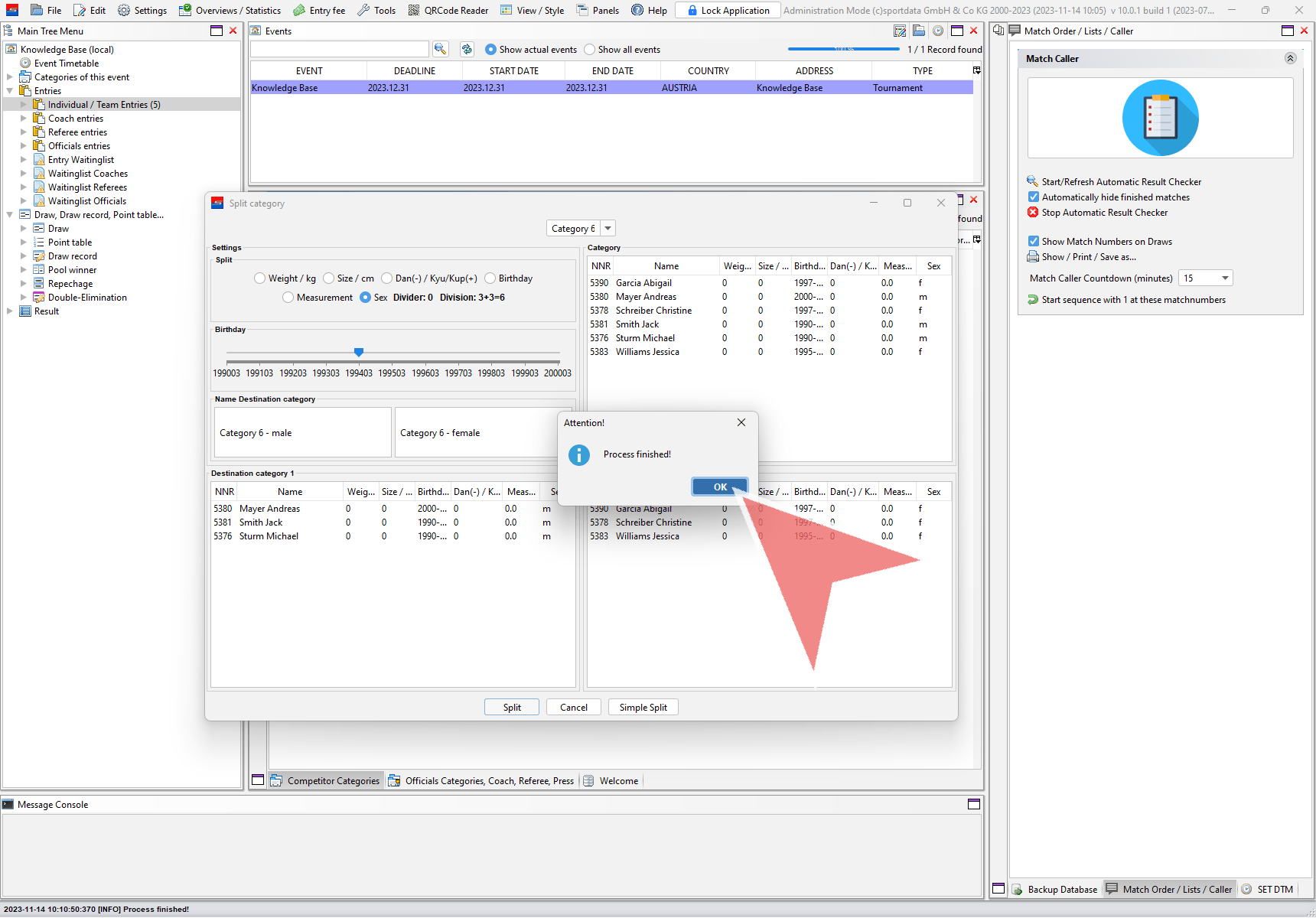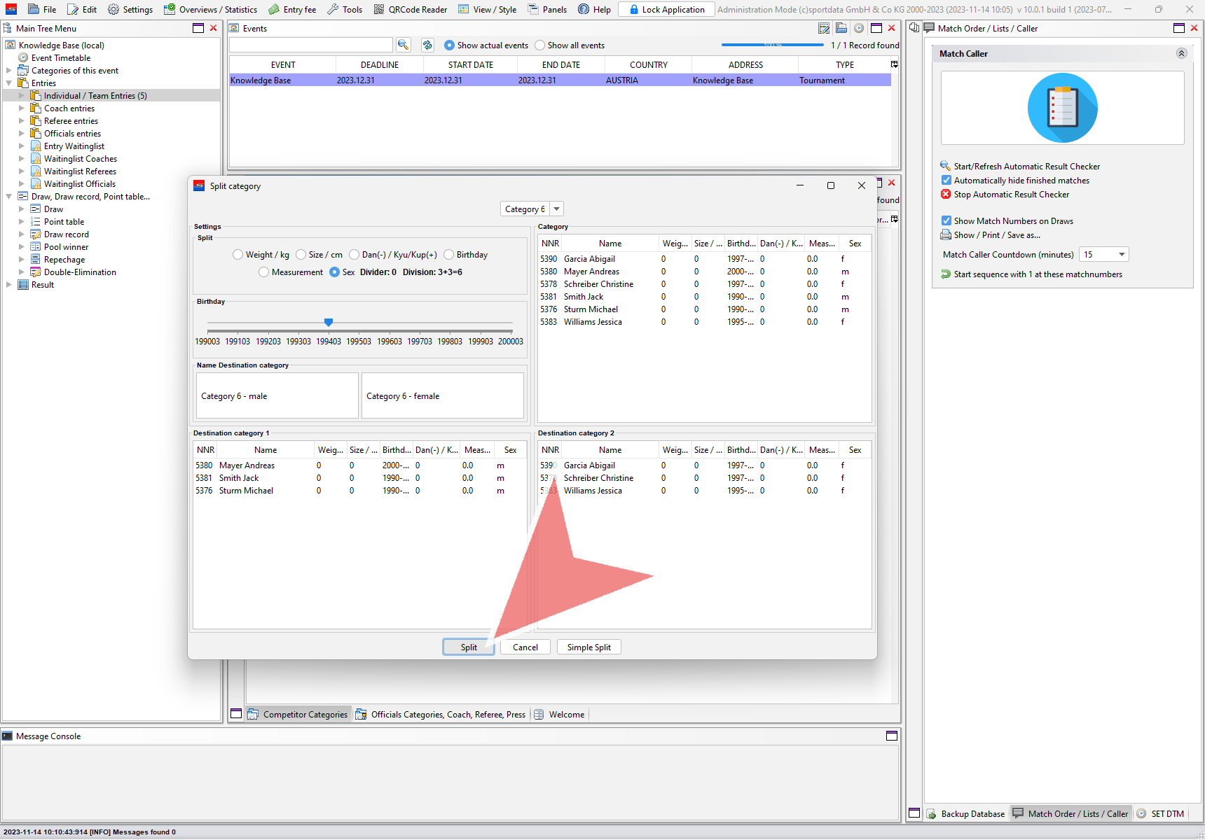 Select the split-method you would like to use, e.g. the sex of the competitors.