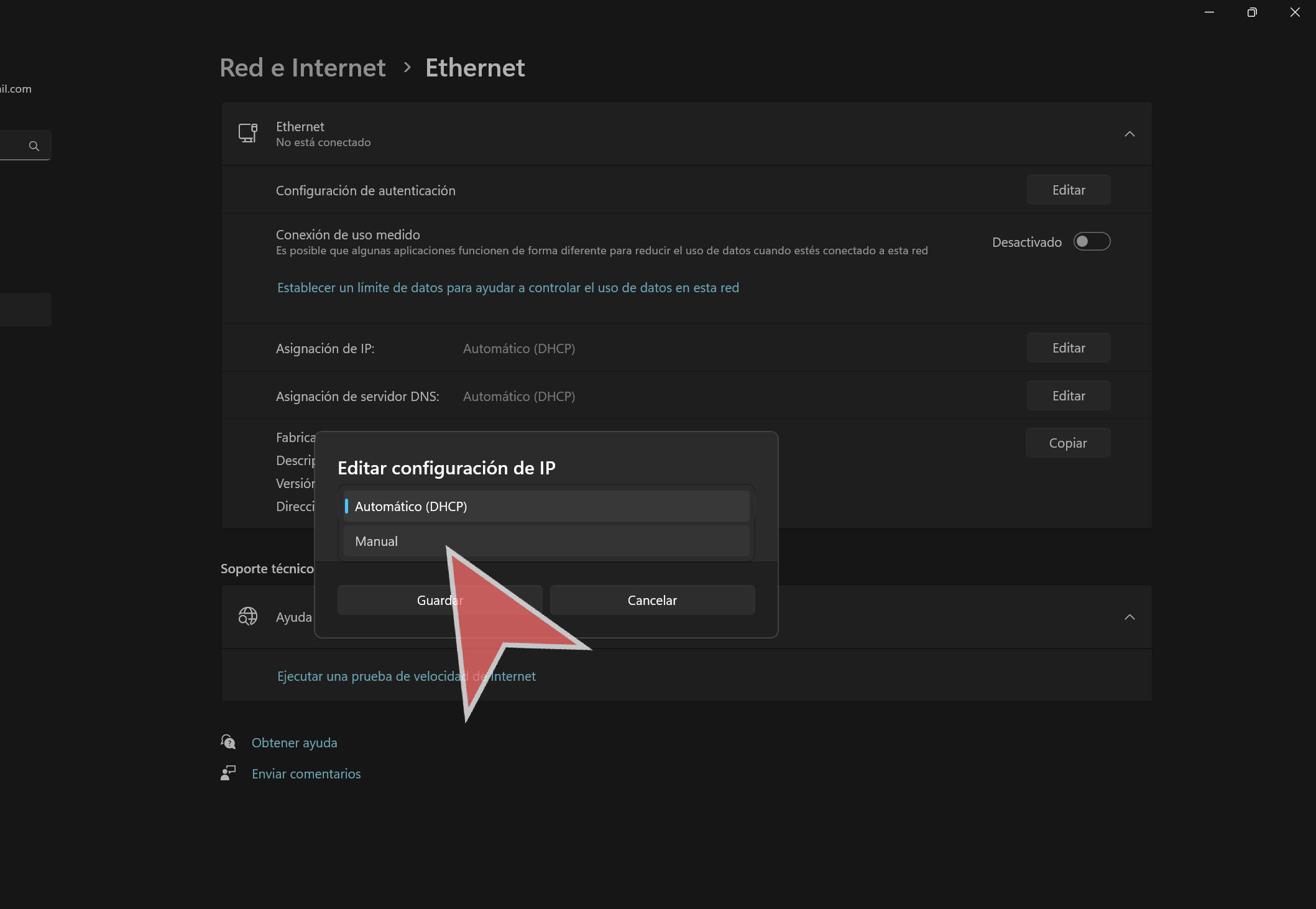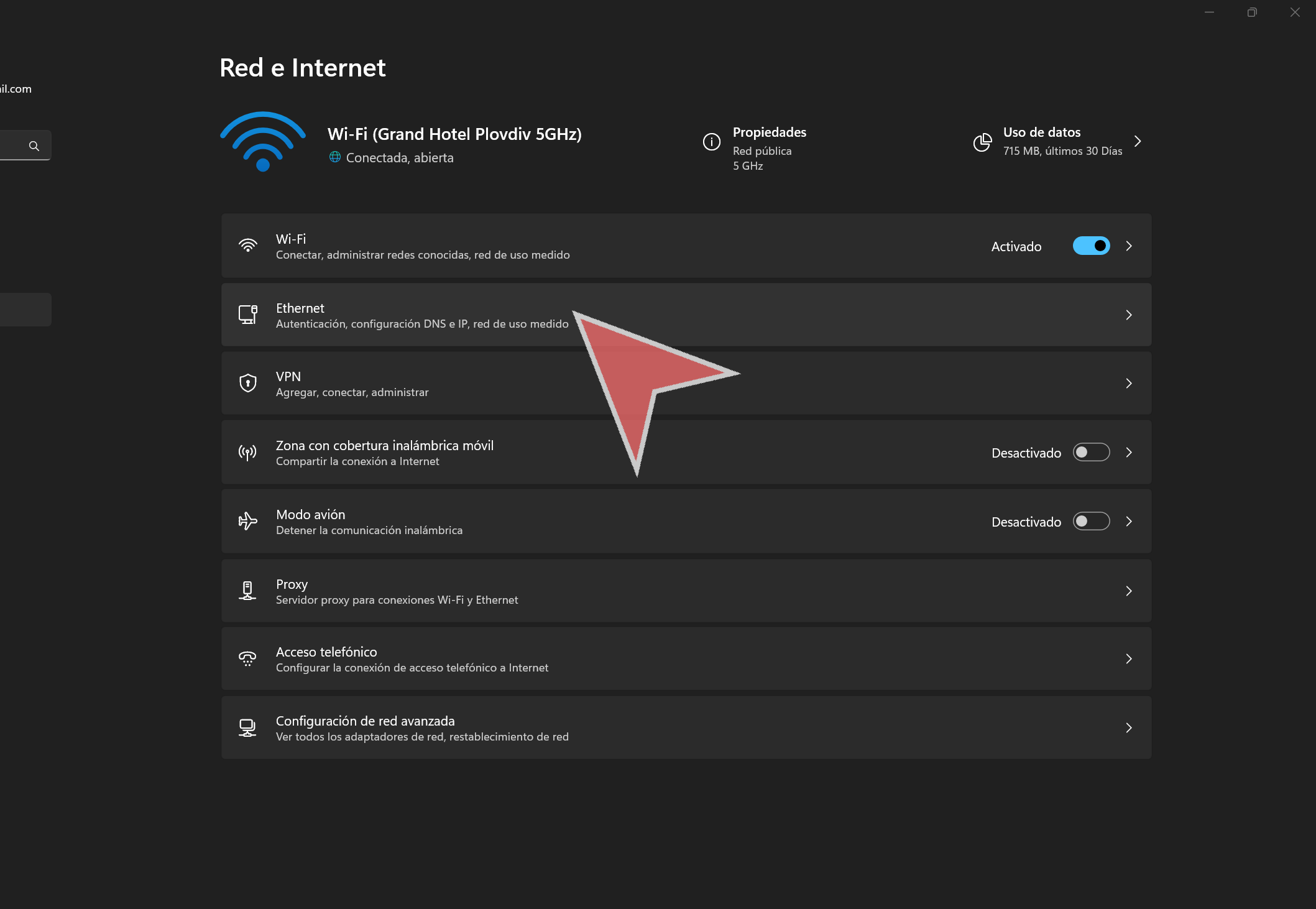 Click on the “Ethernet” section if you are connected via cable, or on “Wi-Fi” if you wish to set up a static IP for a wireless connection.