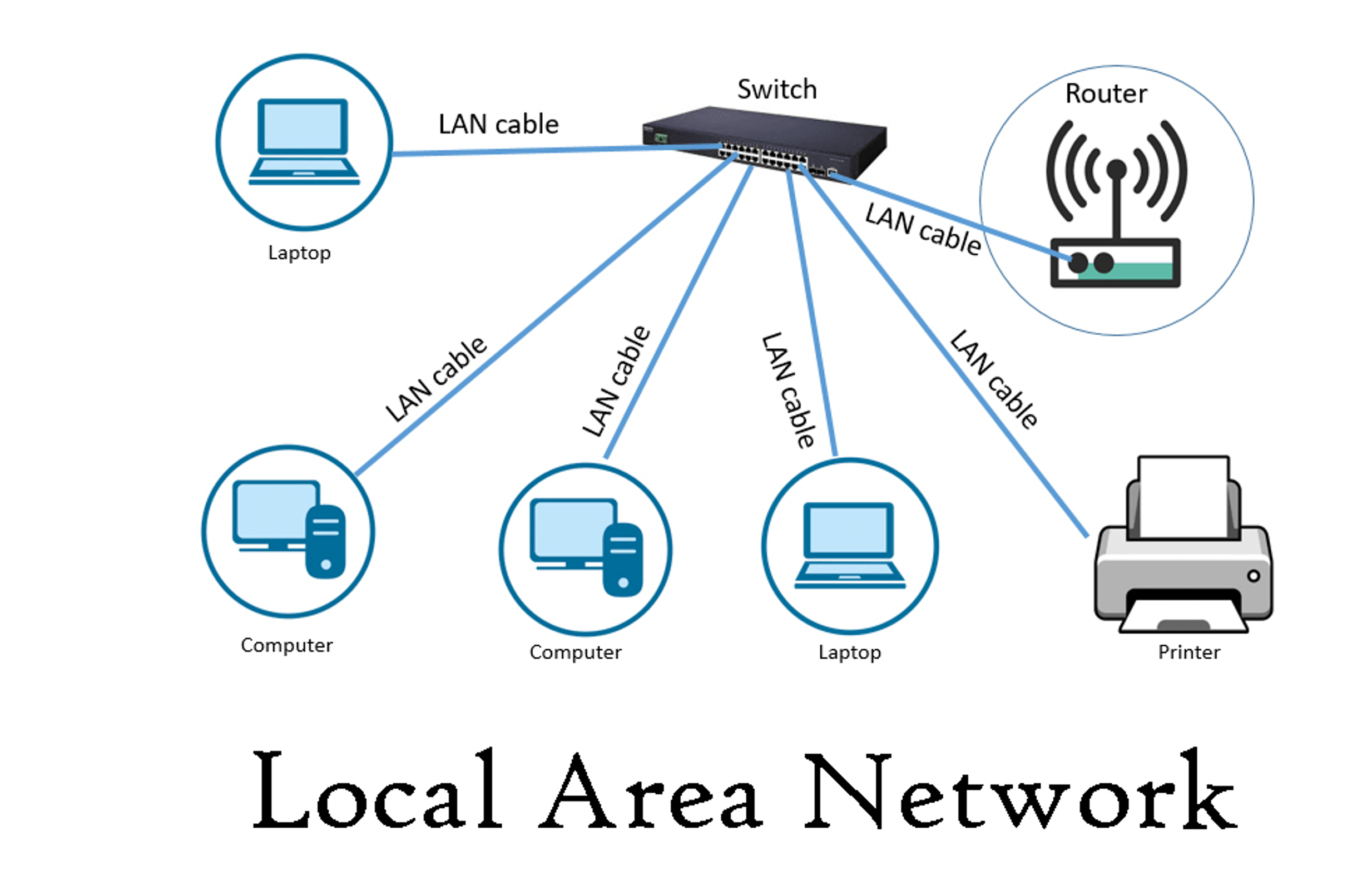 A network confined to a small geographic area, like a home, office or school. It allows devices within the area to connect and communicate with each other.