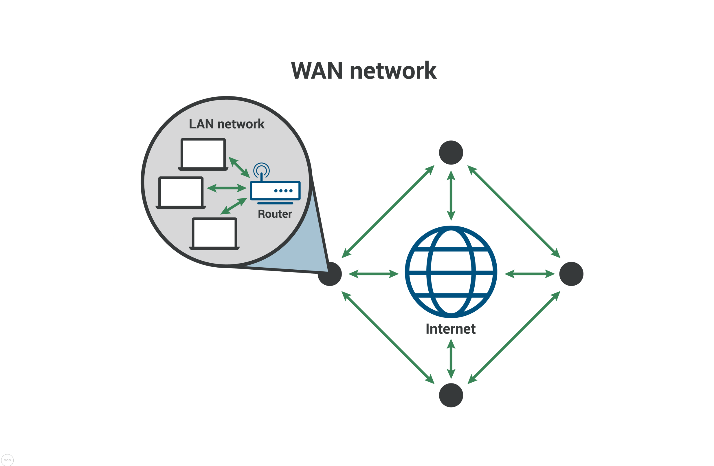 A network that spans a large geographical area, such as a city, country or even globally. The internet is an example of a WAN, connecting multiple LANs together.