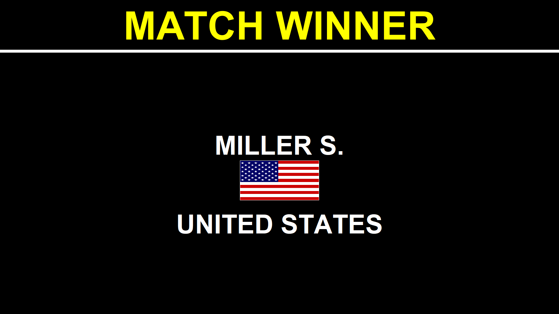 This is the match winner displayed on the screens.