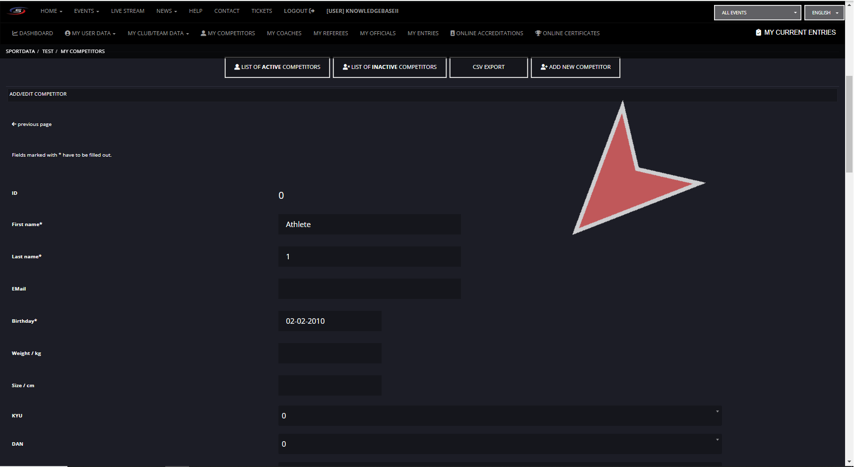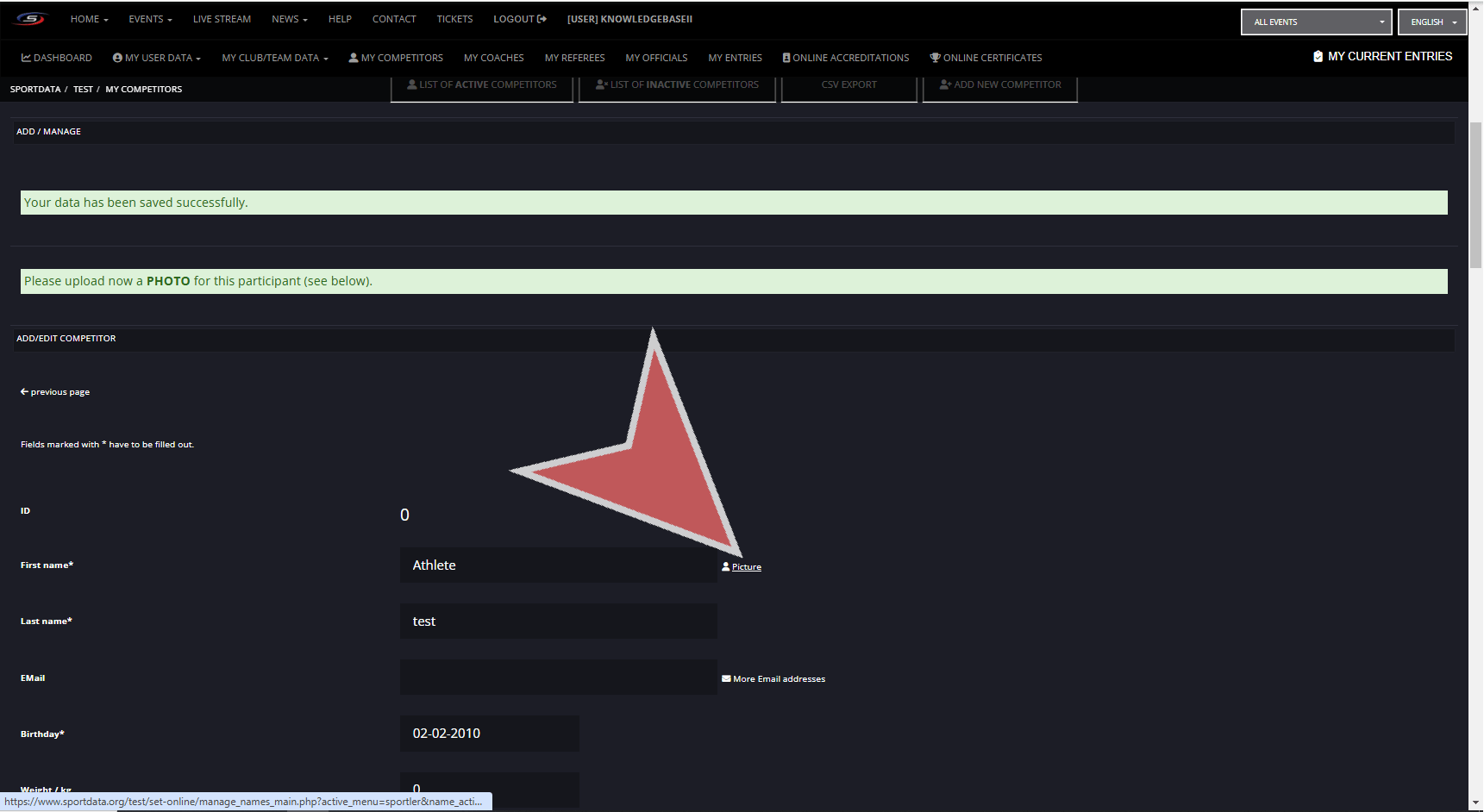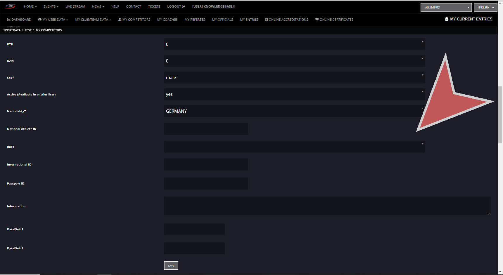 The national and international ids can be important information for ranking, therefore if ranking points at an event can be earned it is important to match the ids to their ranking. Finally, after filling out the relevant information about your athlete, you can save their profile.