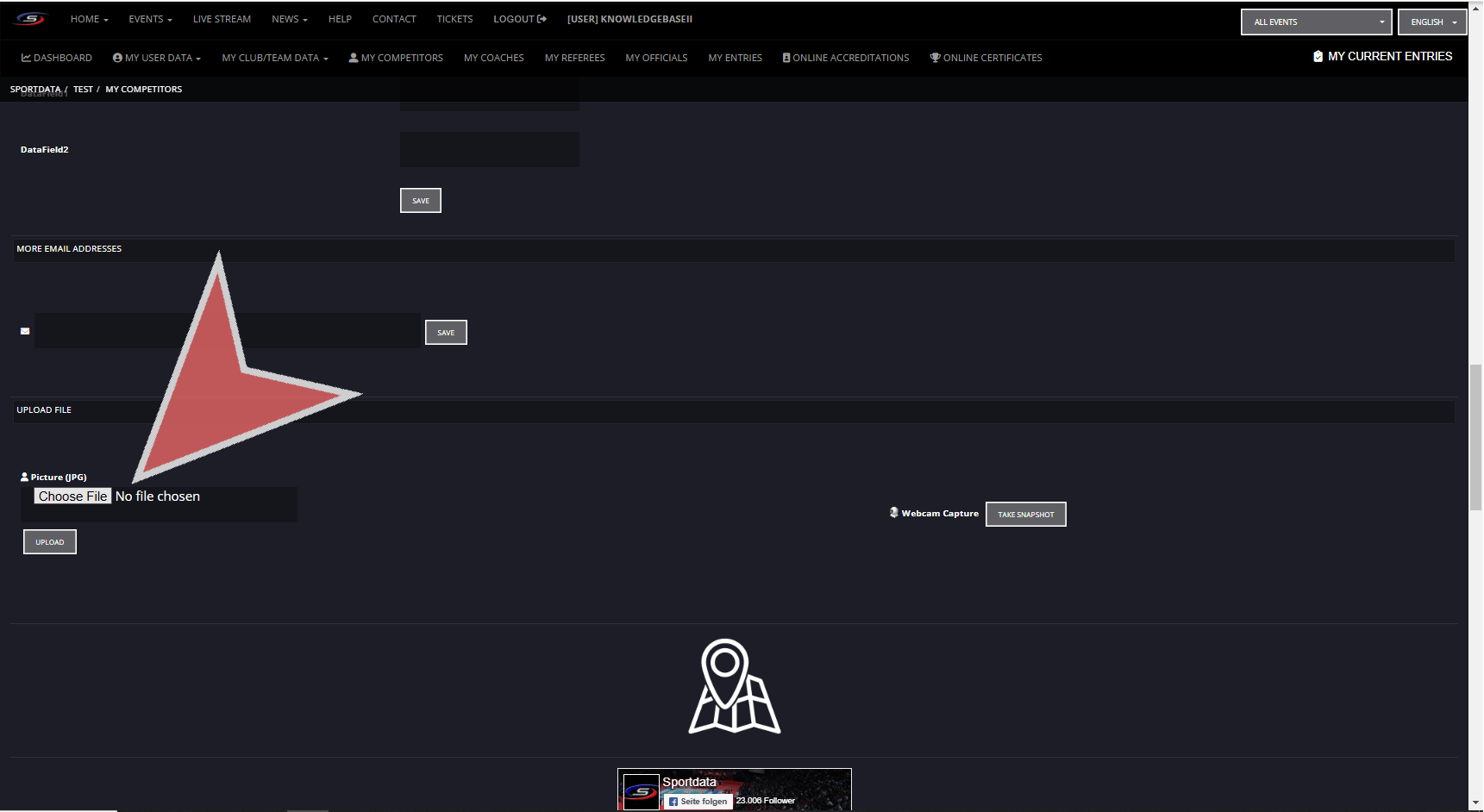 Choose a file, or take a snapshot with your webcam, and upload the file to the profile.