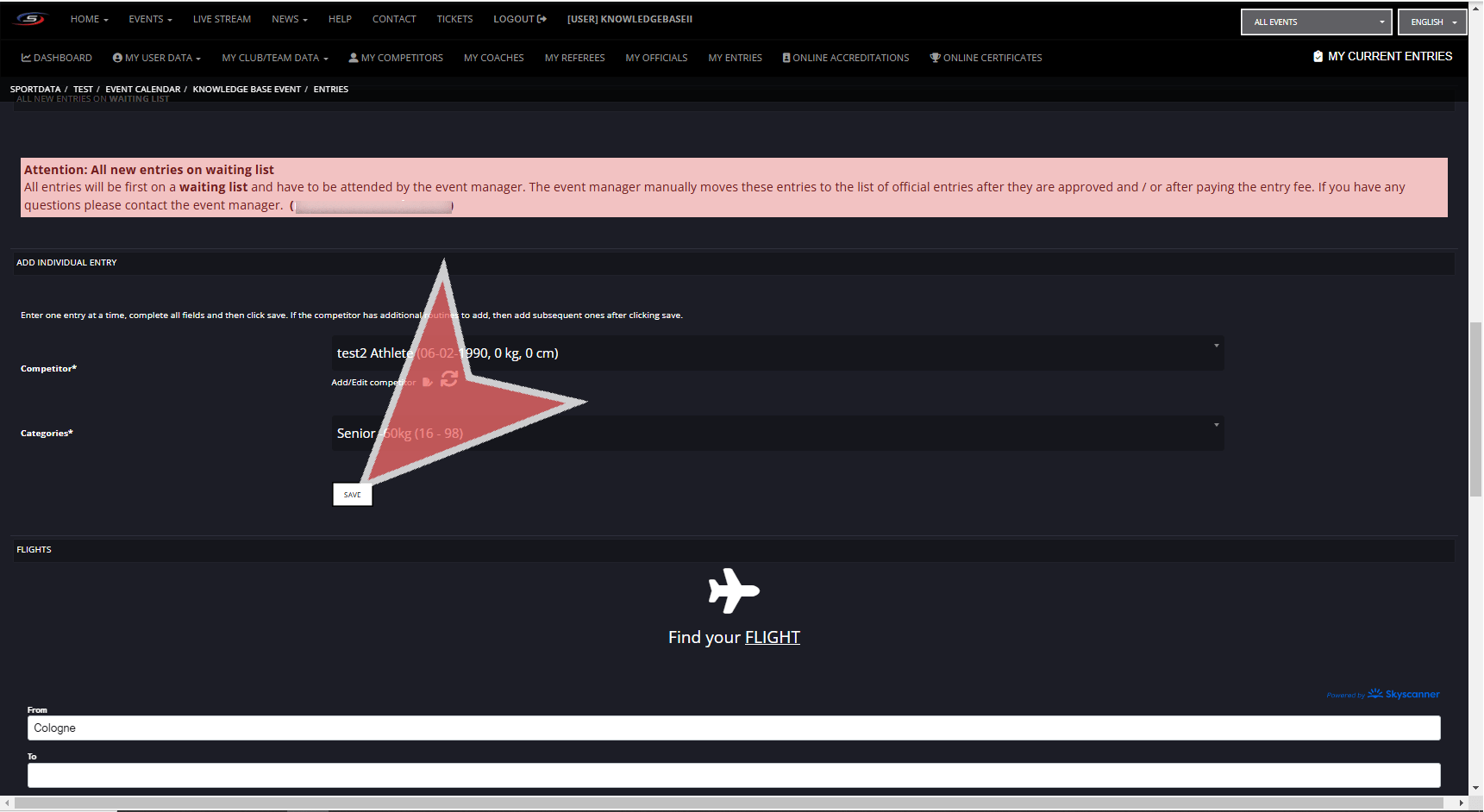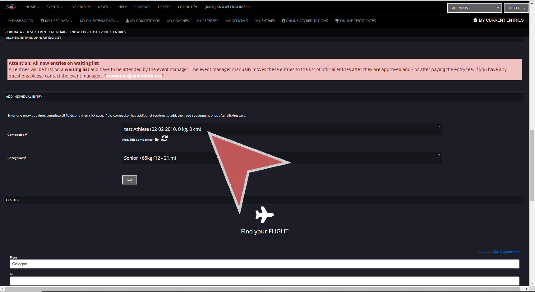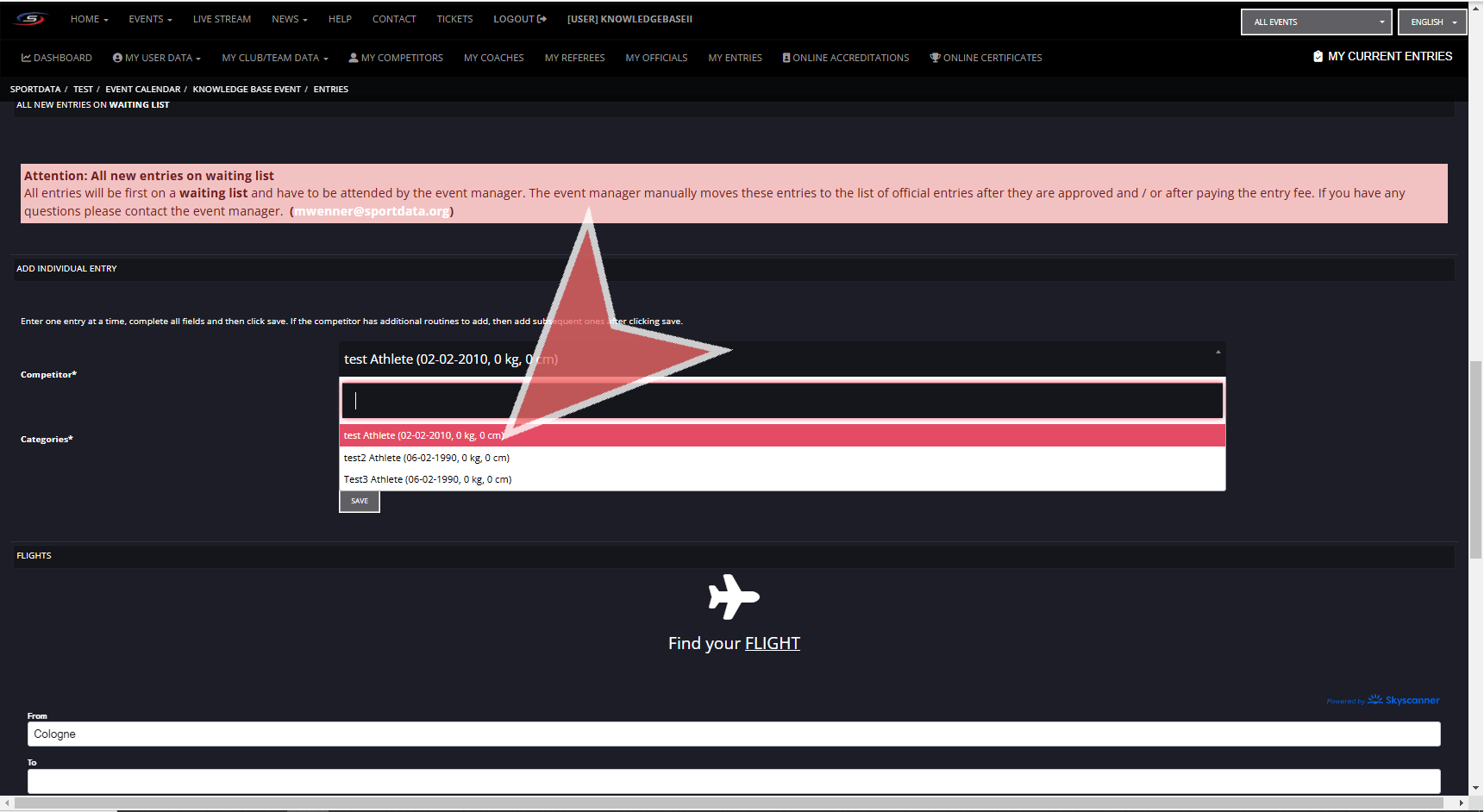 Now that you have your athletes profile created, you can add them to the event registration