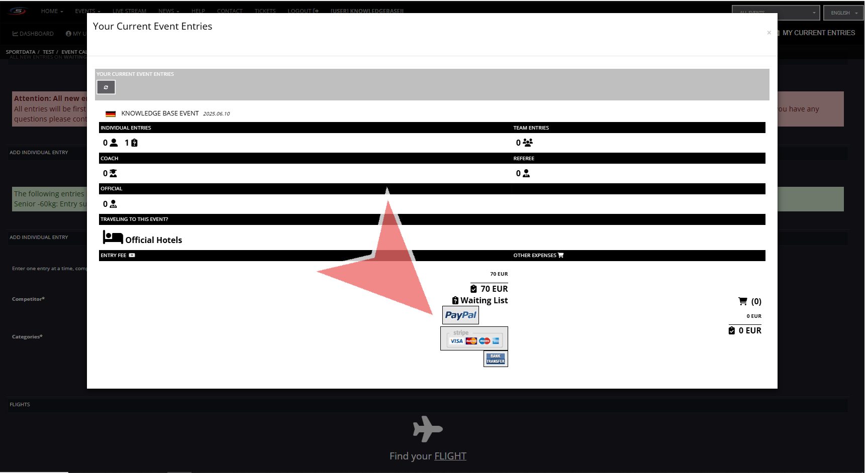 Payments will go directly to the event organizers and not to Sportdata.