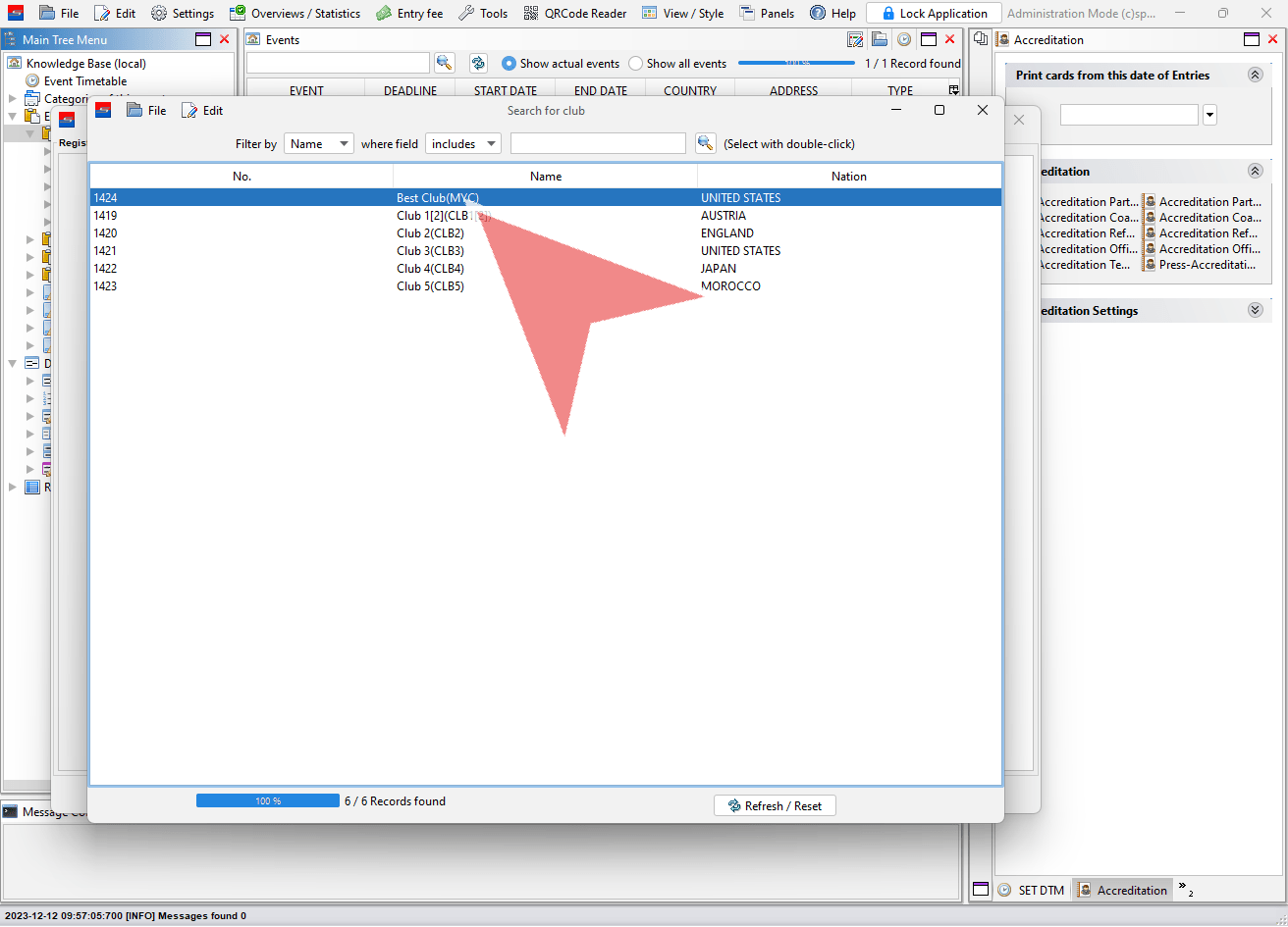 Select the club from the list by double clicking on it. In case your club is not shown here, you have to register a new club.