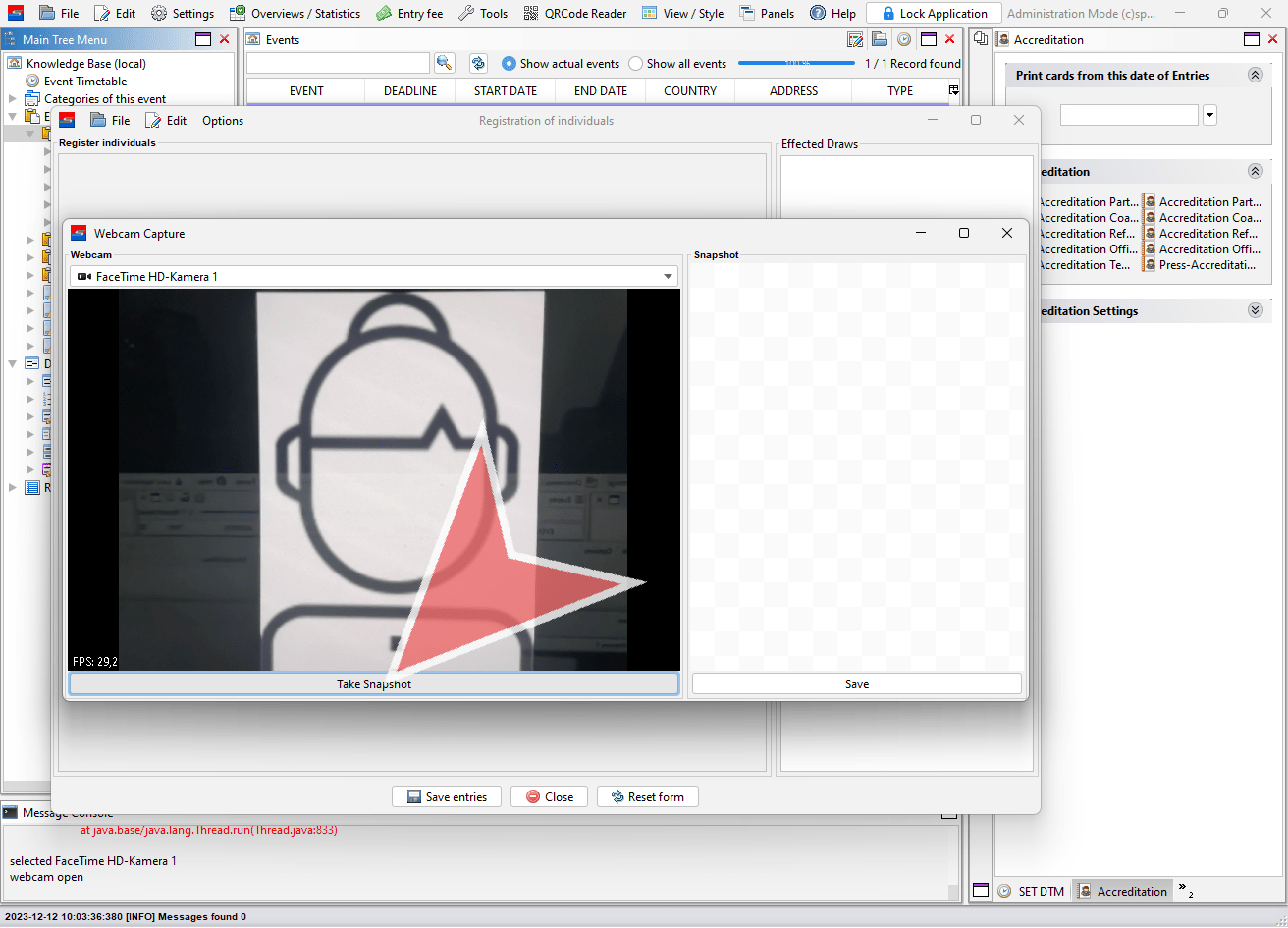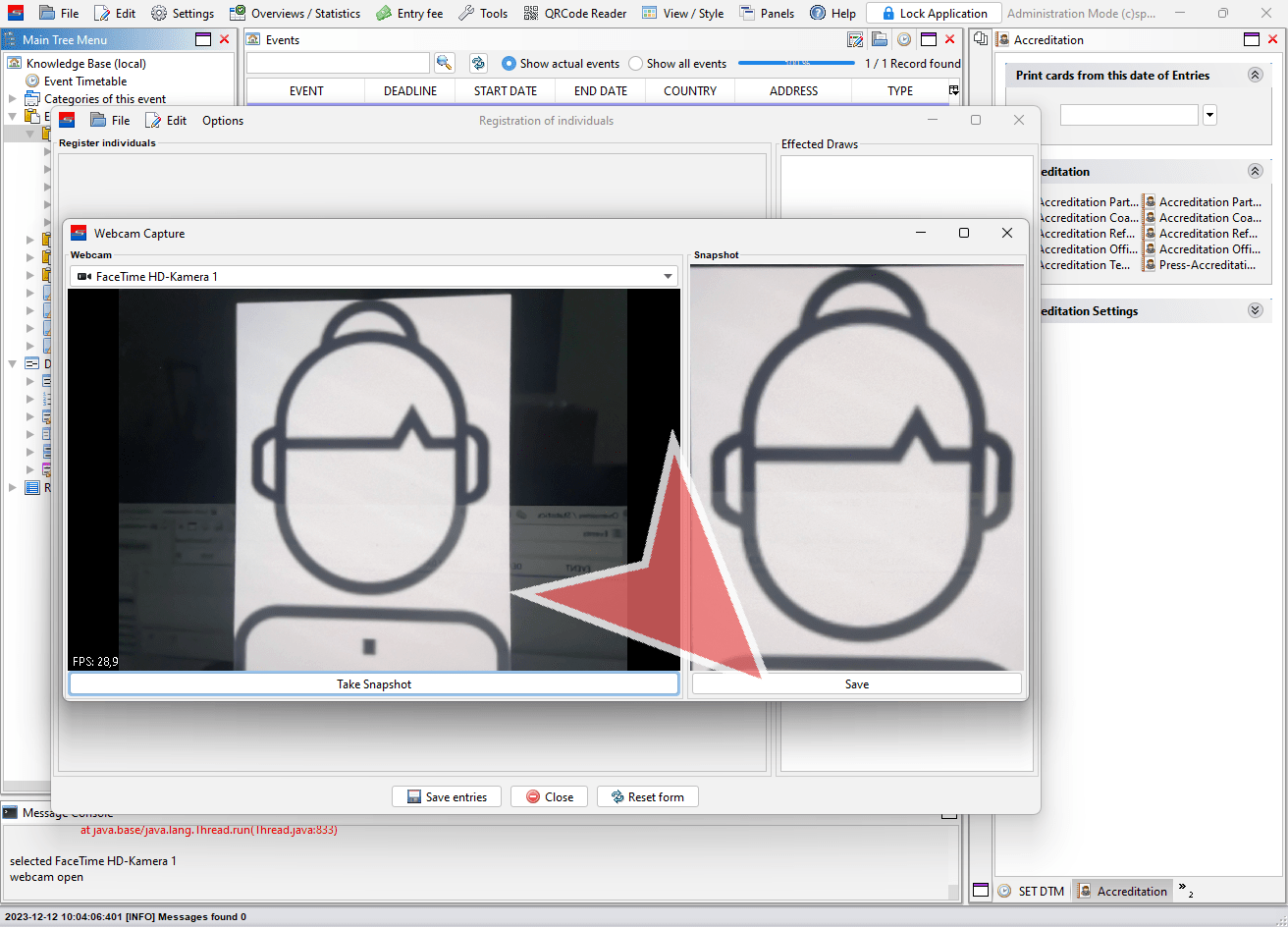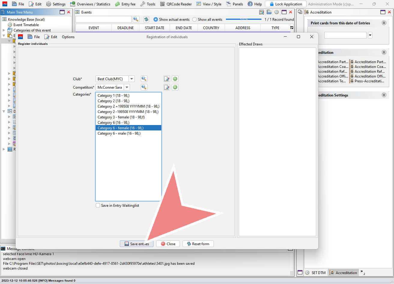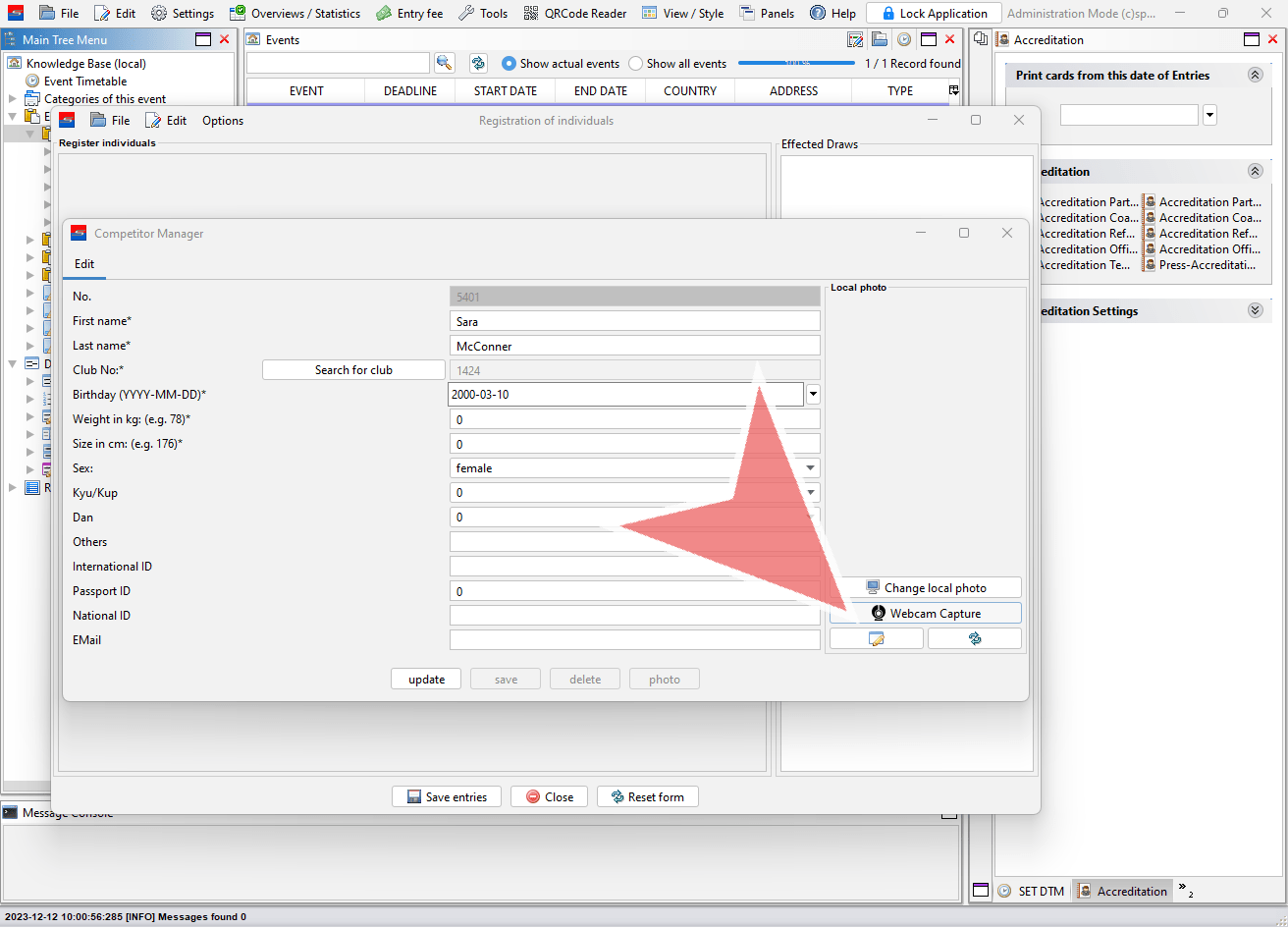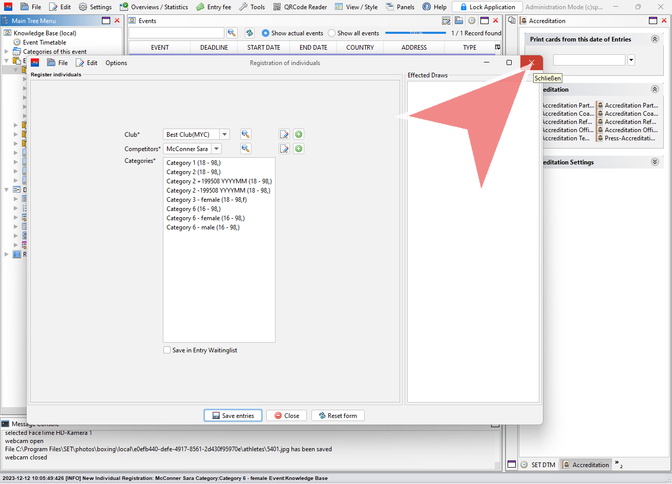 It is also possible to access the registration window directly through the entry list by going to “Edit” and then “Registration of individuals”.