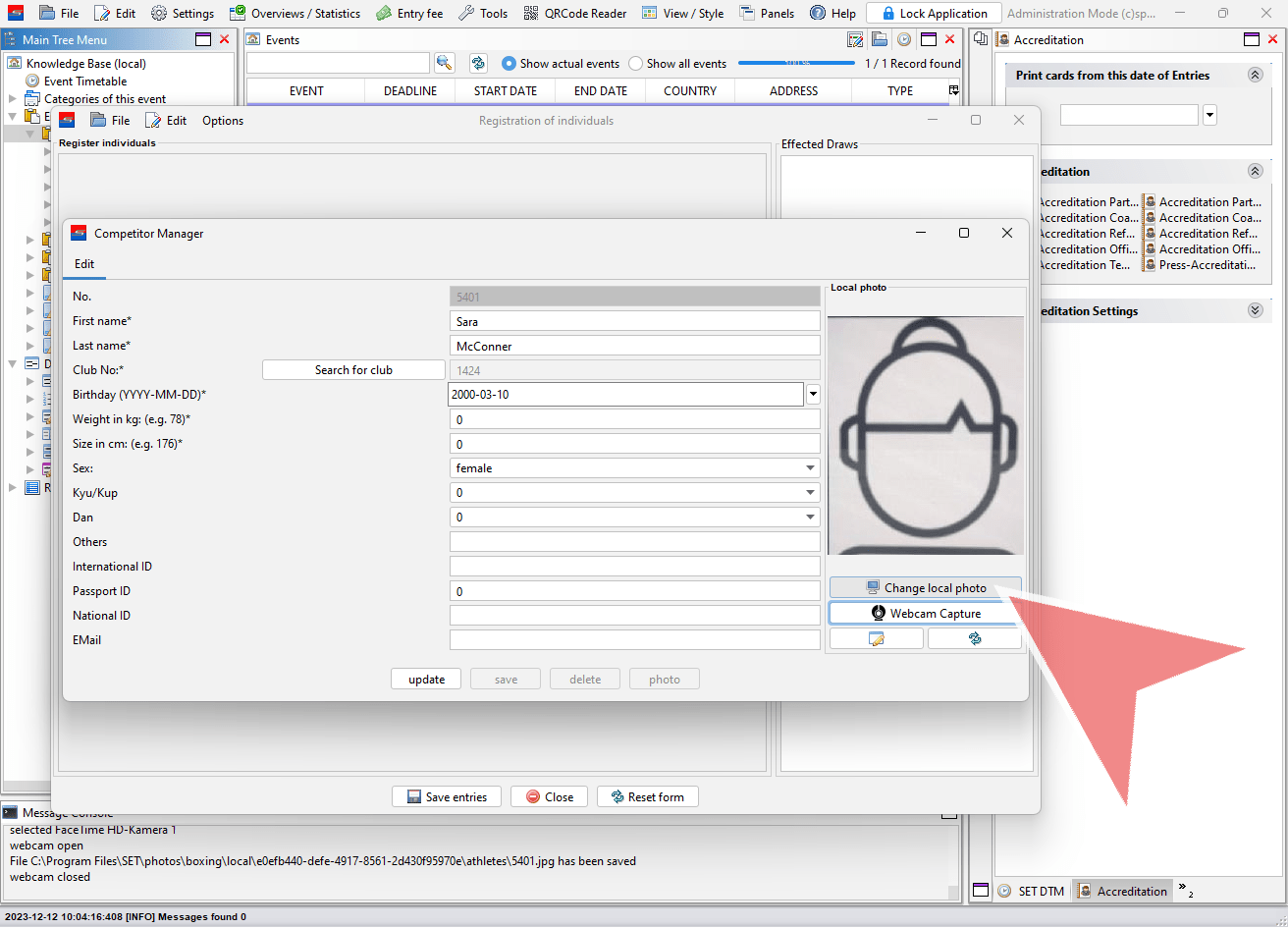 After the initial information are saved, a picture of the athlete can be added. Therefor you can either upload a picture from your device or use a connected webcam to take picture.