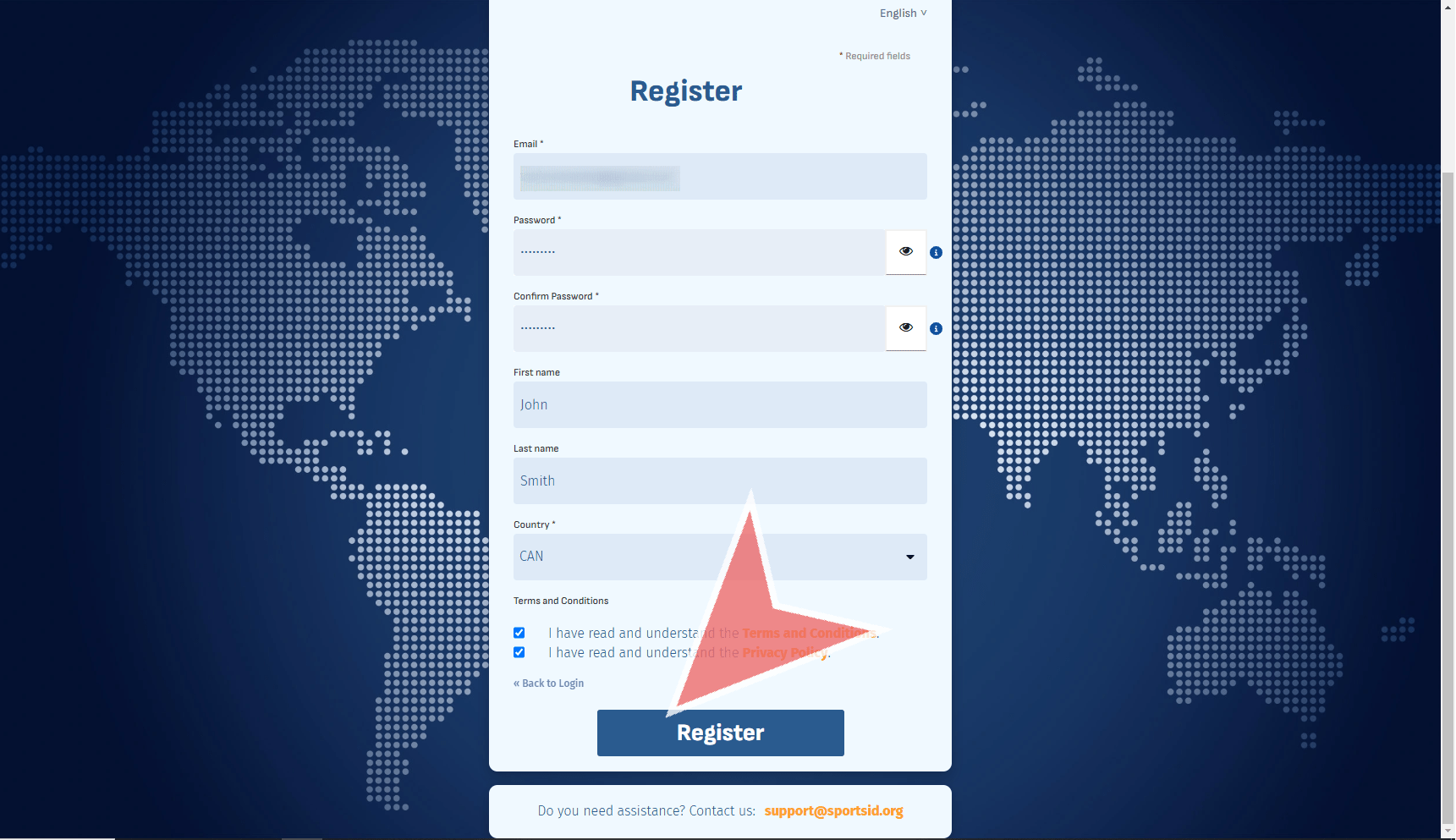 Fill out the fields, agree to the terms and conditions and click on the ‘Register’ button.