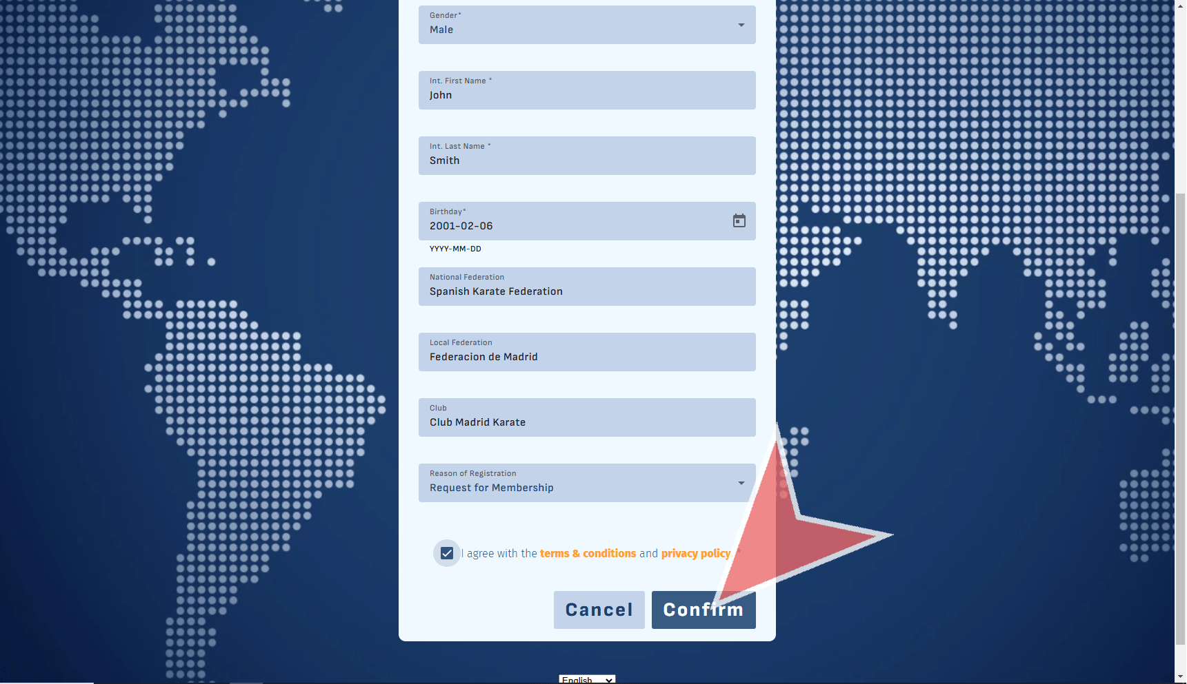 Fill out the federations and clubs you belong to and confirm the reason for your registration.