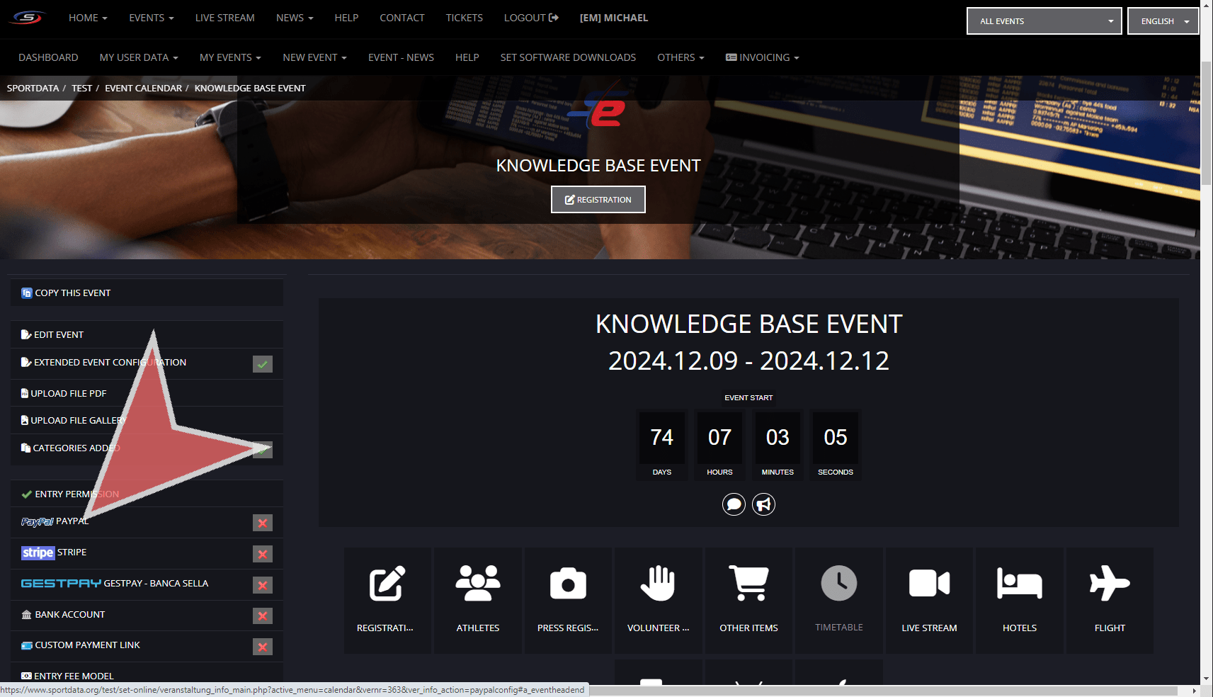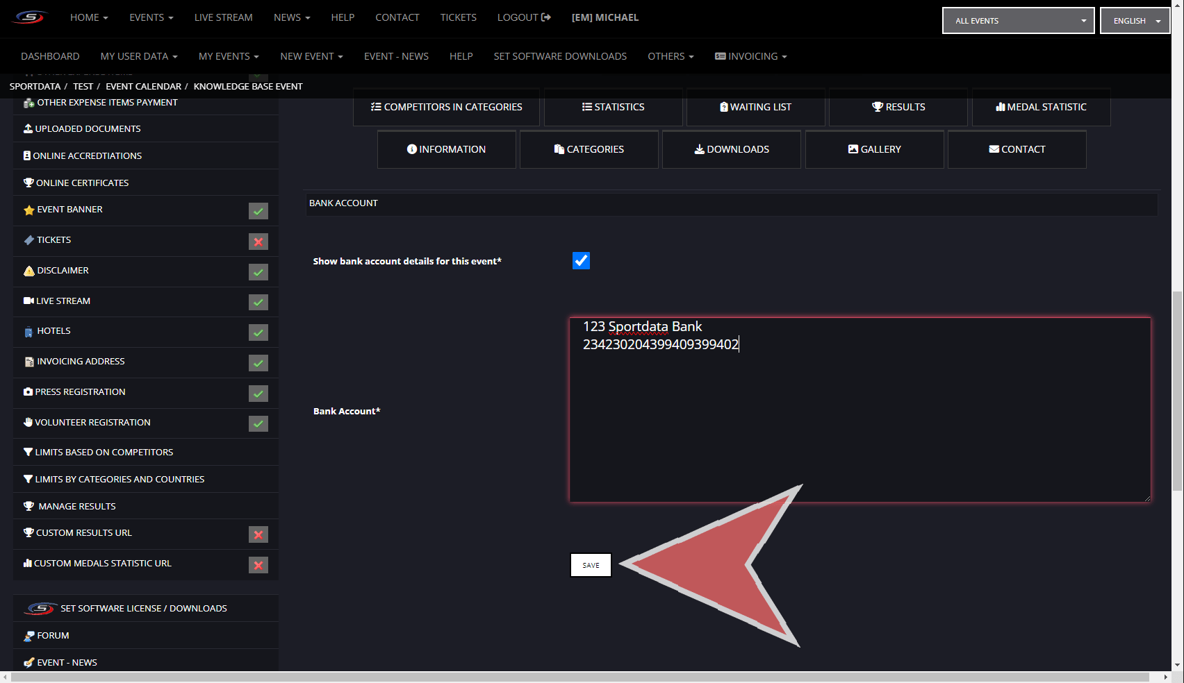 For bank accounts transfers, you will need to provide your bank account information, and show bank account details for this event. Note, that the following Sportdata does not get any notifications from your bank and will not be able to track payments.