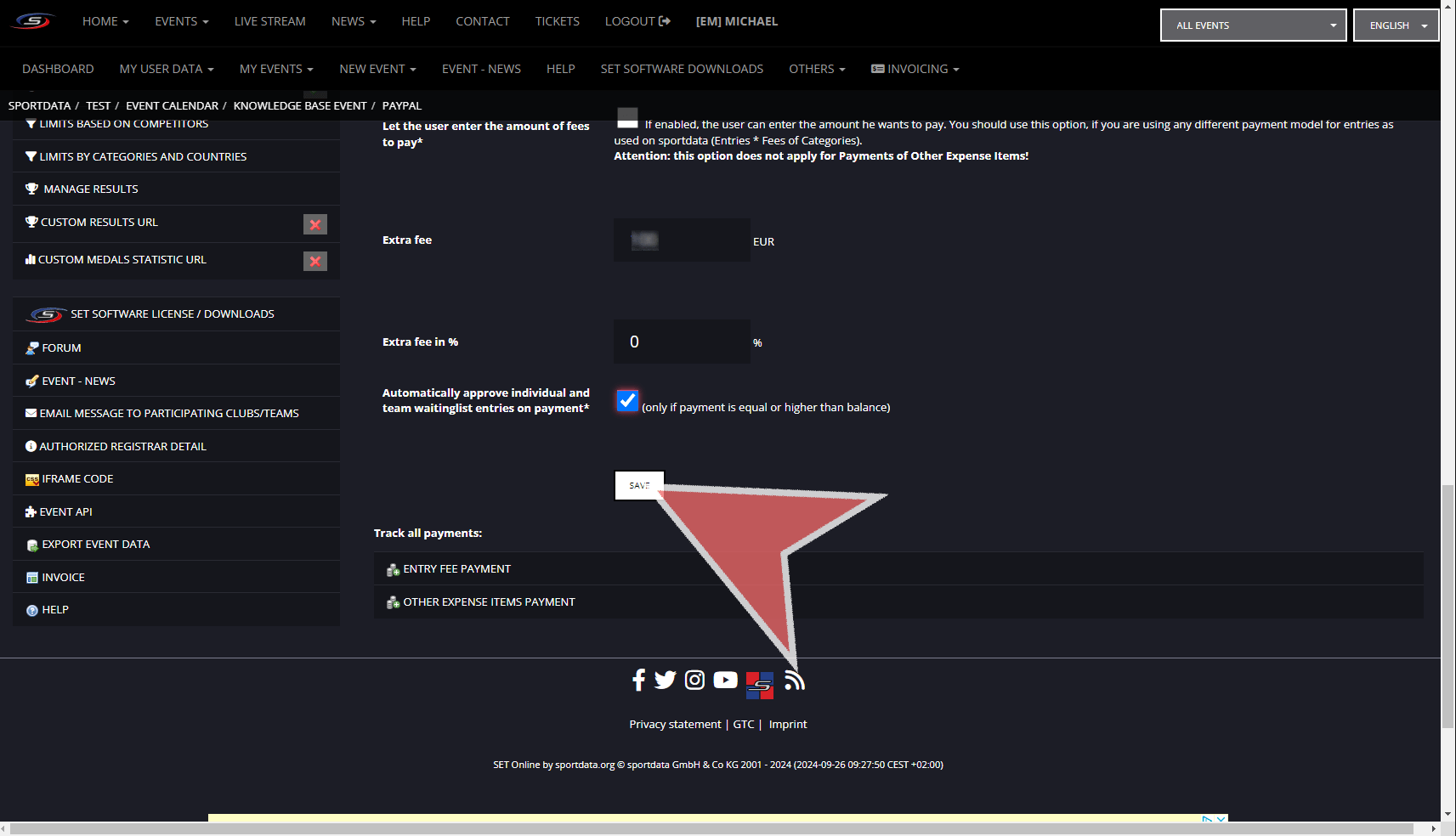 If no additional checks are required to approve an entry, then tick the box to automatically approve the waiting list entries on payment. To save all settings click save. Notifications of complete payment will be recorded and can be reviewed in entry fee payments, however refunds are not tracked.