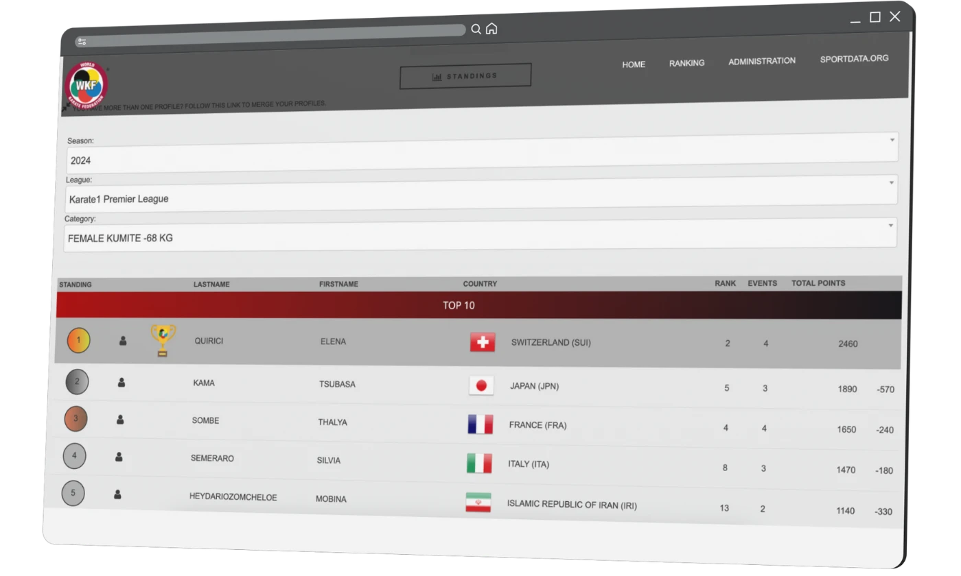 Keep track of standings to see who leads the season or secures qualification and athletes records, showcasing their performance history and achievements over time.